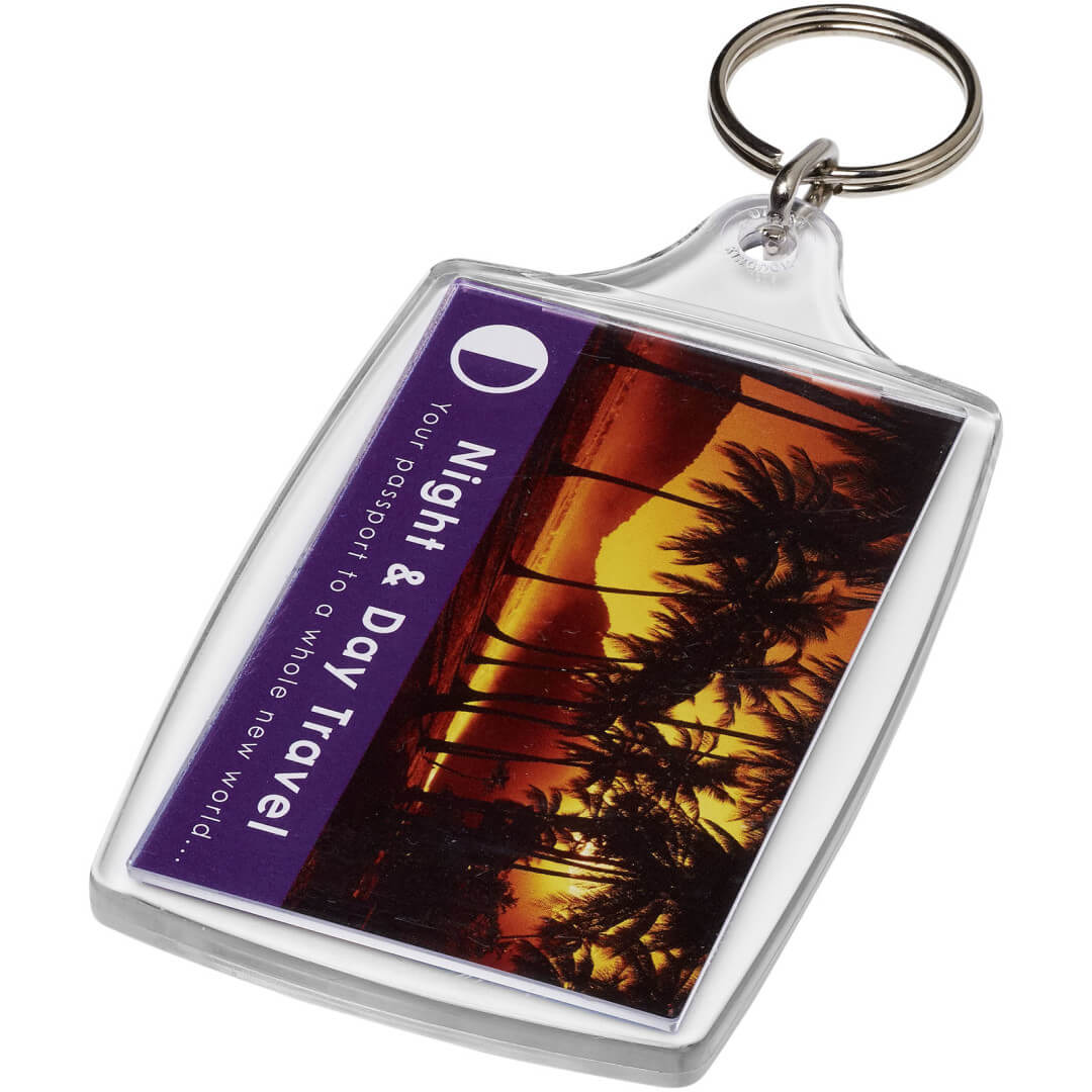 Velká klíčenka Orca L4. Čirá klíčenka L4 s kovovým kroužkem. Kovový kroužek má plochý profil, který je ideální pro korespondenci. Rozměry potištěné vložky: 7 cm x 4,5 cm. Plast GPPS.