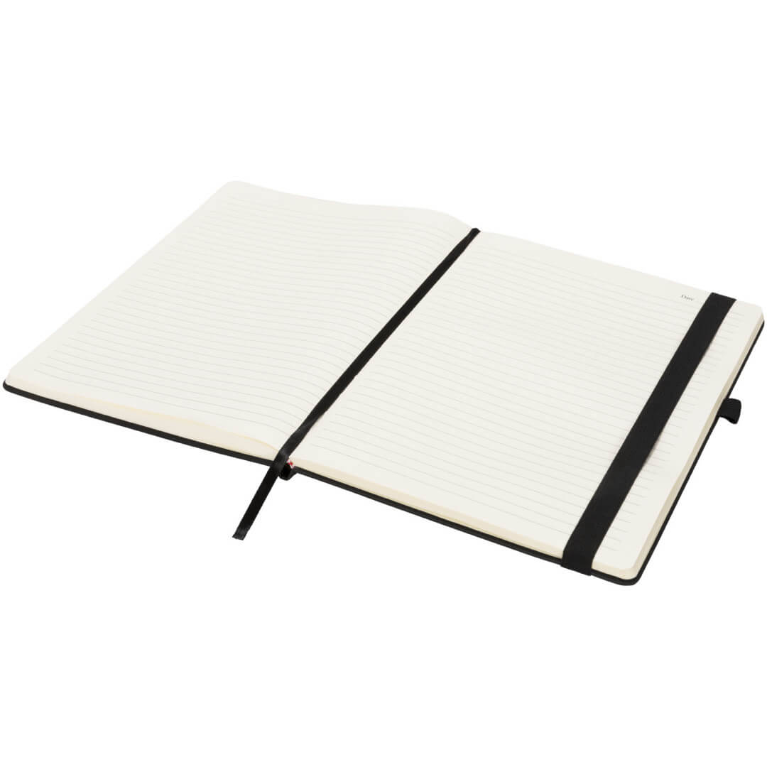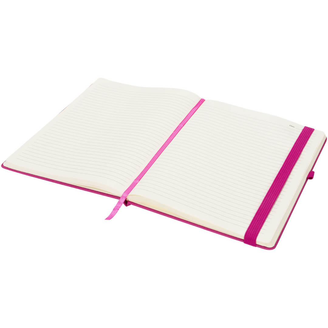 Řada zápisníků Rivista má stylový moderní design a velmi kvalitní obálku s taktilním povrchem, ideální pro doplnění loga a údajů o Vaší společnosti. Lze si vybrat z pestré nabídky moderních barev. Je vybaven elastickým uzávěrem, poutkem na pero, stužkou k založení stránek a úložnou kapsou ve vnitřní straně zadní obálky. Obsahuje 128 listů krémového linkovaného papíru (70g/m2). PU Plastic.