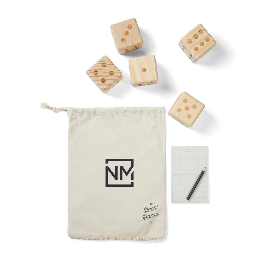 Venkovní varianta oblíbené hry s kostkami. Cílem je hodit nejvyšší součet horních hodnot kostek. Vhodné pro všechny generace. Obsahuje 5 kostek (7 x 7 x 7 cm), poznámkový blok a tužku pro zápis skóre, manuál a bavlněný pytlíček pro snadný přenos. Veškeré dřevěné části jsou vyrobeny z FSC® borového dřeva.