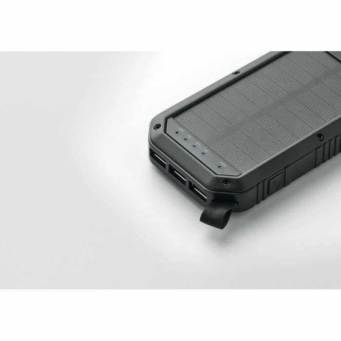 Venkovní solární nabíječka s vestavěnou funkcí světla. Tato powerbanka s kapacitou 8000 mAh má dobíjecí lithiovou baterii a dokáže nabít váš smartphone nebo mobilní zařízení, ať jste kdekoli. Díky solárnímu panelu se sama nabije, když je vystavena slunci nebo dennímu světlu. V případě potřeby promění 21 LED světel toto zařízení ve svítilnu. Ideální dárek pro dobrodruhy a milovníky kempování. Součástí balení je kabel USB a zástrčka micro-USB. Velikost 14,2 x 7 ,6 x 2,2 cm.