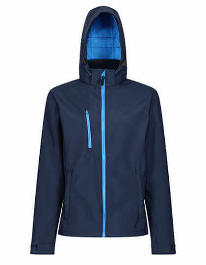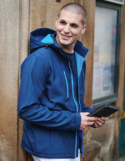 Měkký tkaný softshell XPT s hřejivou zadní vrstvou, vodotěsná a prodyšná membrána z třívrstvého materiálu | Plně potisknutelný vnější materiál s vnitřní membránou odolnou proti větru | Odnímatelná softshellová kapuce, nastavitelná pružná šňůra kolem obličeje a nastavovače na manžetách | 2 spodní kapsy na zip a 1 kapsa na zip na hrudi