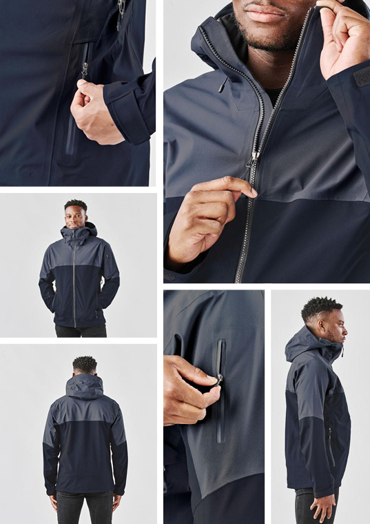 - 180 g/m² -55 % polyester, 45 % polyester (recyklovaný) - Mechanická strečová vazba na 100% recyklovaný polyesterový jednoduchý žerzej - Plně podlepené švy - Kompatibilní s přilbou - Předtvarované lokty - Voděodolné dvoucestné zipy v podpaží - Středový přední zip YKK® AquaGuard® - Třívrstvá vnější nepromokavá/prodyšná vrstva STORMTECH H2XTREME® 20000/10000