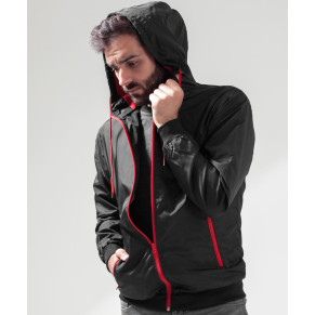Větruodolný a vodoodpudivý materiál, prodyšný materiál, kapuce se stahovací šňůrkou, široké žebrované manžety na rukávech a lemu, 2 boční kapsy se zipem, přístup k zušlechtění v zadní podšívce, neutrální velikostní štítek, pratelné na 30°.