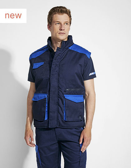 Kepr | Přední zip se zapínáním na suchý zip | Materiál proti větru v manžetách | Vpravo vnější kapsa na mobilní telefon s klopou a zapínáním na suchý zip | Dvě skládané přední kapsy s klopou a zapínáním na suchý zip | Dvě kapsy na psací potřeby | Vnitřní kapsa se zapínáním na suchý zip | Kapsa na zip | Zesílená zadní klopa | Pružné nastavení šířky | Kontrastní ramenní vsadky s detaily | Odtrhávací štítek, 80% polyester / 20% bavlna.