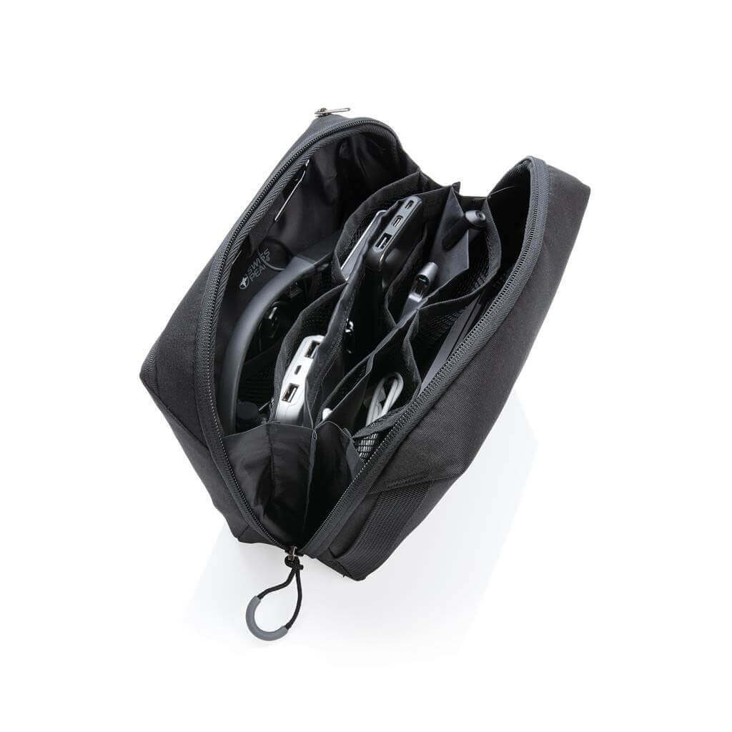 Pro uchování nabíjecích kabelů, elektroniky, cestovních potřeb, toaletních potřeb nebo jakýchkoliv každodenních věcí. Praktická taštička, kterou využije skutečně každý. Origami kapsy poskytují neuvěřitelnou spoustu úložného prostoru při maximální míře organizace. Elastická poutka pro uchování drobností jako třeba pera. Vnější popruh pro snadný přenos a otevírání na zip umožňující široké otevření pro snadný přístup. Vnější kapsa na zip s průchodem na kabel pro snadné nabíjení. Vyrobeno z recyklovaného polyesteru AWARE™. Na výrobu bylo využito 8,5 500ml PET lahví a bylo uspořeno 5,1 litrů vody. Z výtěžku každého prodaného kusu je navíc přispěno 2 % na podporu iniciativy Water.org. Bez PVC.