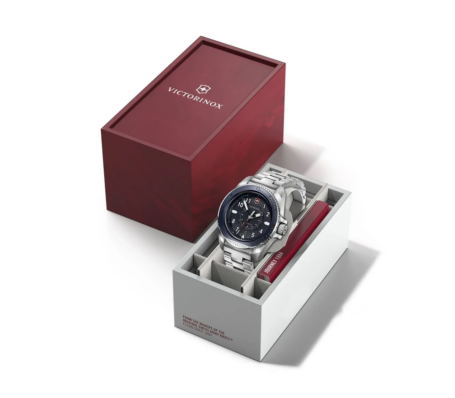Hodinky Journey 1884 jsou inspirovány švýcarskou láskou k pěší turistice a dokonale spojují ducha přírody s inženýrskou DNA. Protizávaží ovlivněné švýcarským armádním nožem a vyrytý kód materiálu odrážejí její průmyslové dědictví, které podtrhuje datum založení. Odolnost proti nárazům a antimagnetická odolnost navíc zajišťují přesnost. Vysoce kvalitní materiály, důmyslné konstrukční detaily a inovativní funkce z něj činí ideálního společníka pro velká životní dobrodružství. Vlastnosti Záruka - 5 let Vodotěsnost - 200 metrů Strojek - Quartz Typ pouzdra - nerezová ocel Průměr pouzdra - 43,00 mm Tloušťka pouzdra - 12,00 mm Hmotnost - 200 g Barva ciferníku - modrá Sklo - safírové Šířka řemínku - 21,00 mm V případě, že požadovaný model není skladem, je dodací lhůta cca. 5 - 10 pracovních dnů.