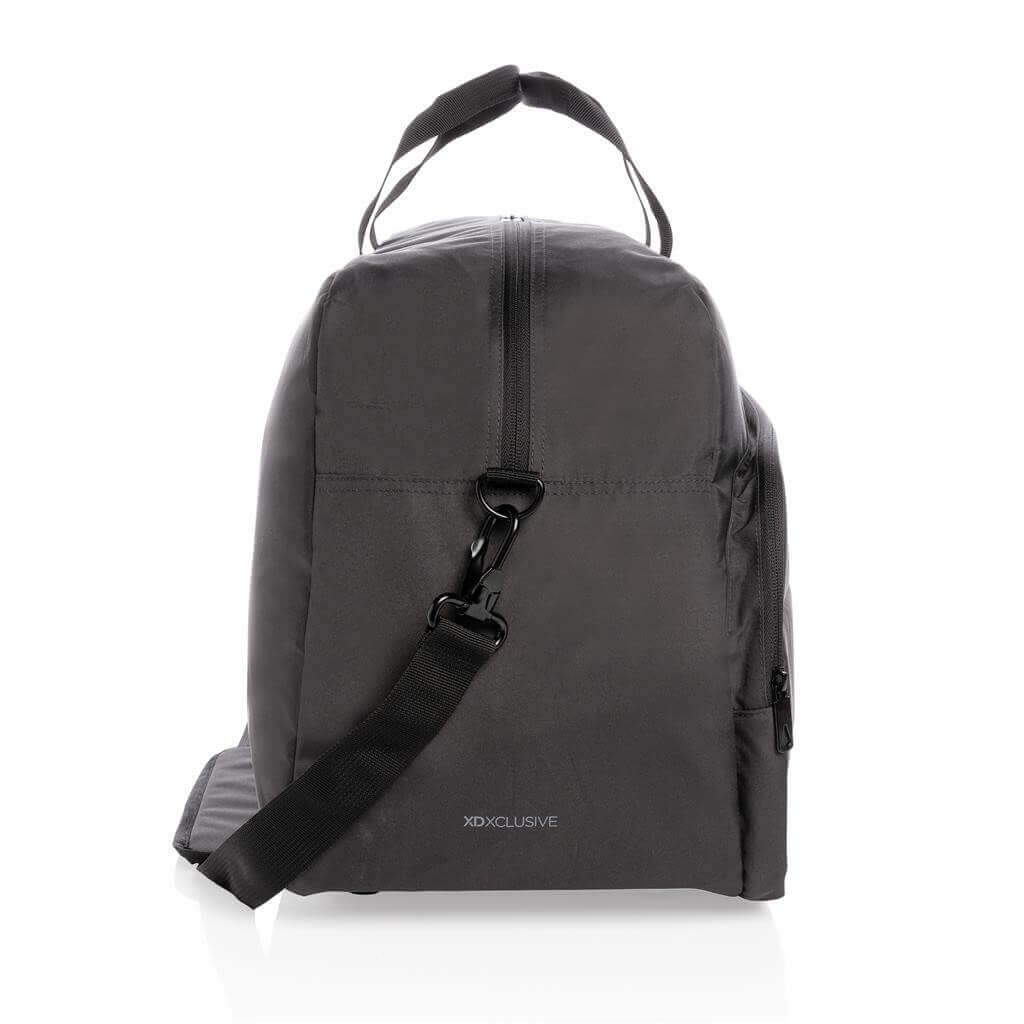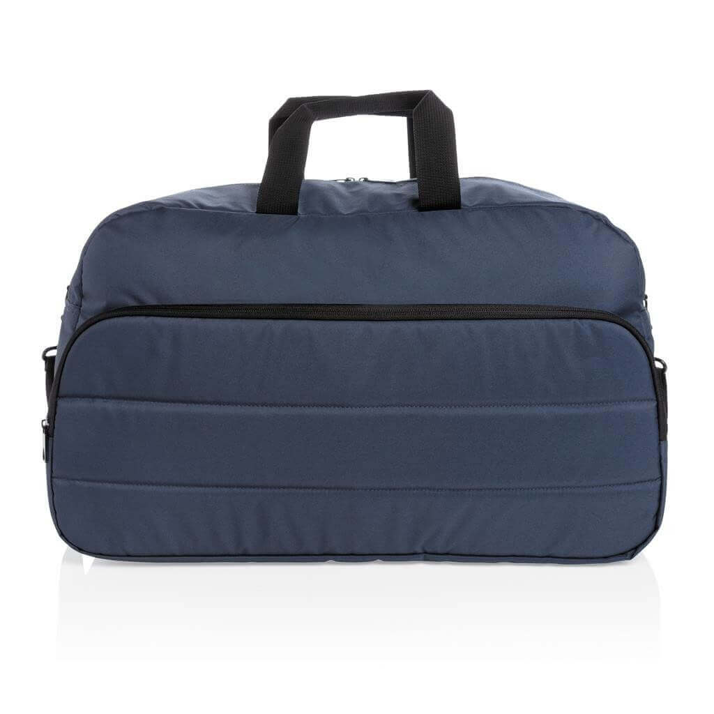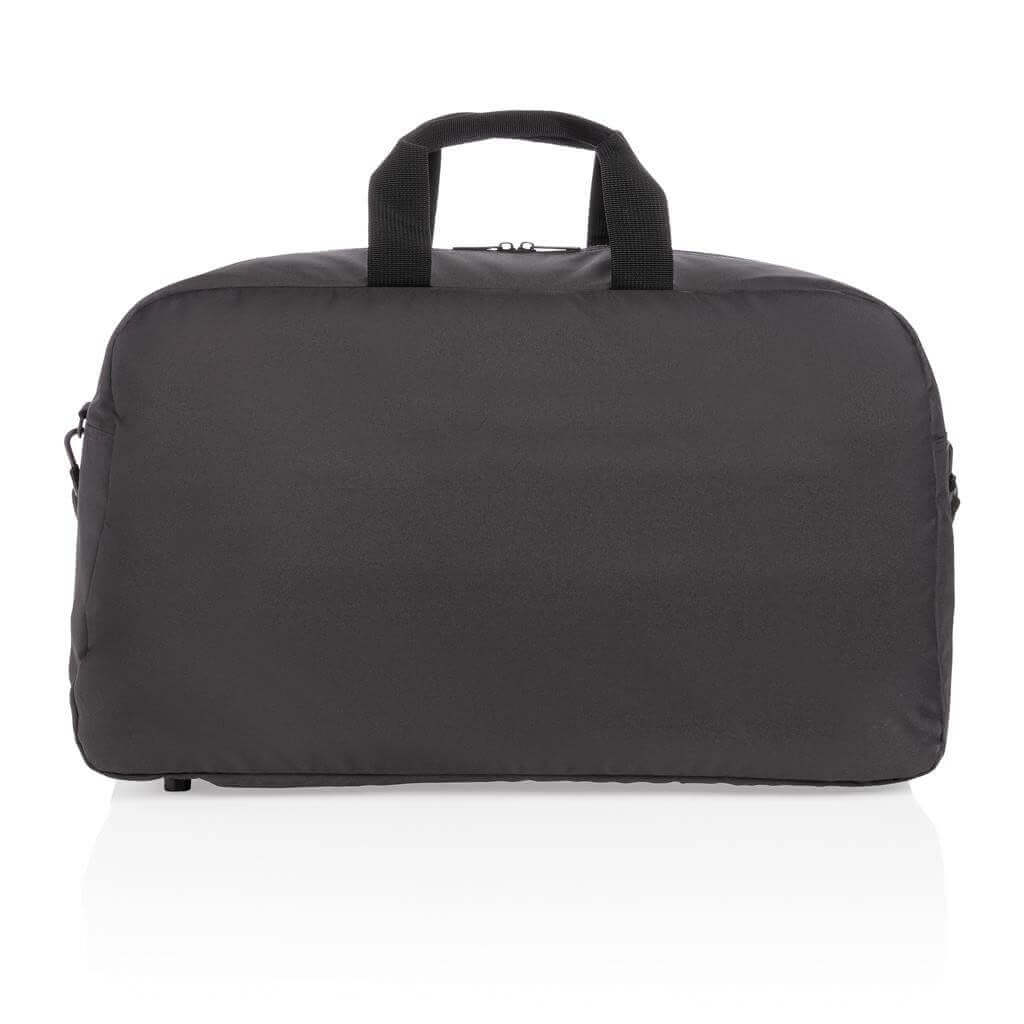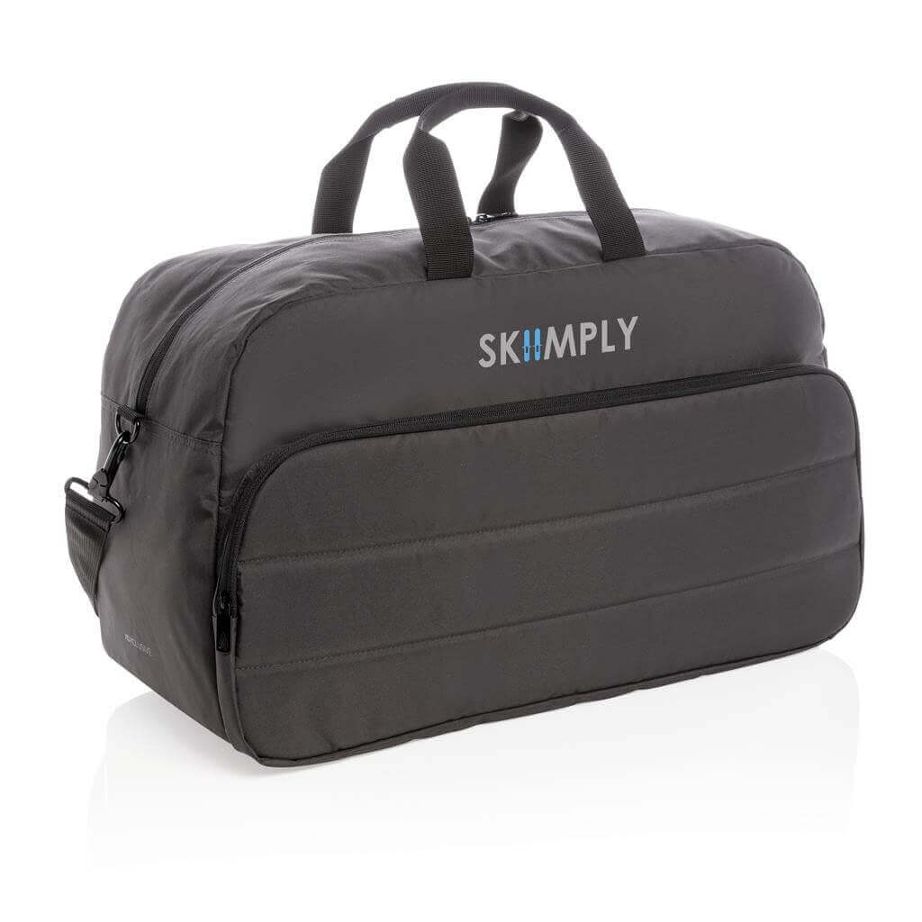 Moderní víkendová taška v jednoduchém čistém designu ideálním na cestování, vyrobená z RPET AWARE™. Rozměrný hlavní oddíl poskytuje dostatek prostoru na krátký výlet, 2 síťové kapsy pro organizaci drobností. Přední kapsa na zip s 2 malými kapsami a 2 poutky na pera. Vnější část i vnitřní podšívka jsou vyrobeny ze 100 % polyesteru AWARE™ získaného z recyklovaných PET lahví. AWARE™ využívá skutečně recyklované materiály, které jsou použitím speciální technologie dohledatelné od jejich zdroje. Recyklace má pozitivní vliv na životní prostředí a při výrobě šetří obrovské množství vody. Bez PVC.