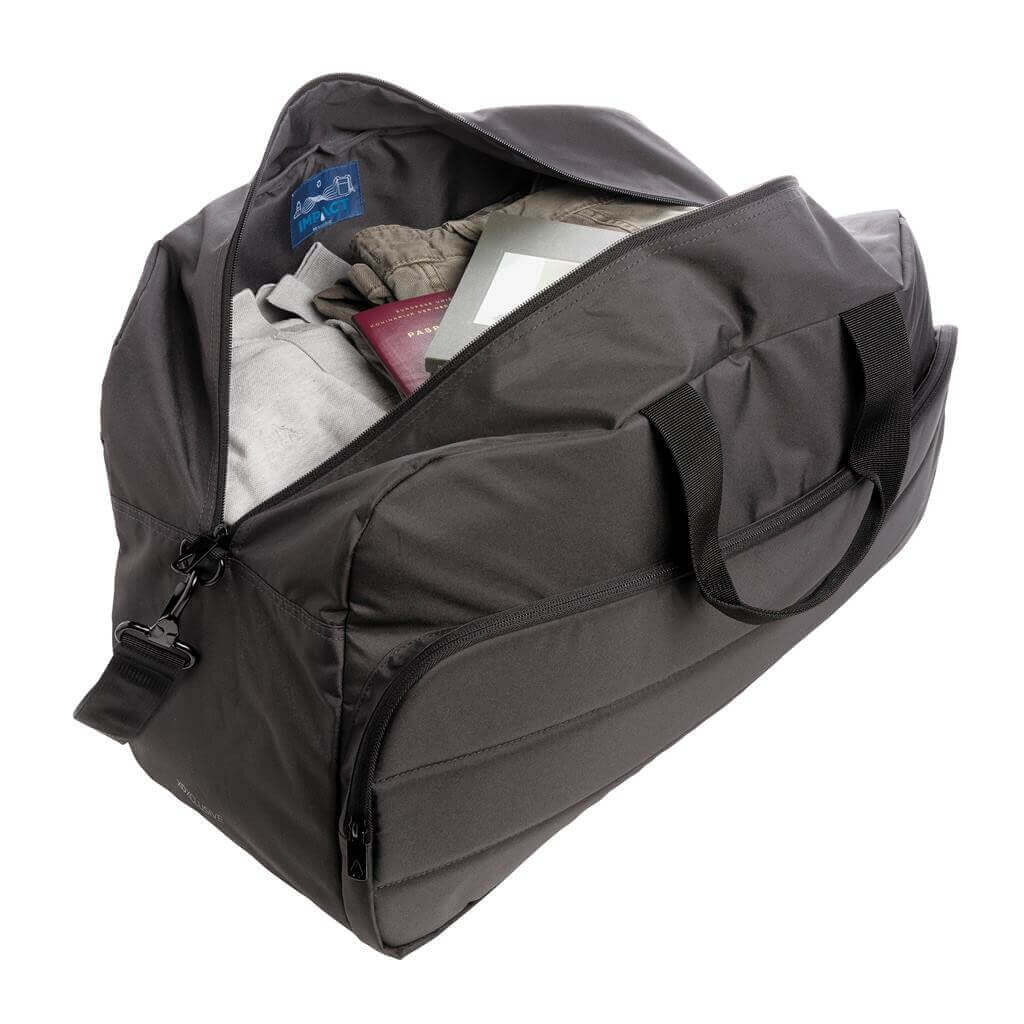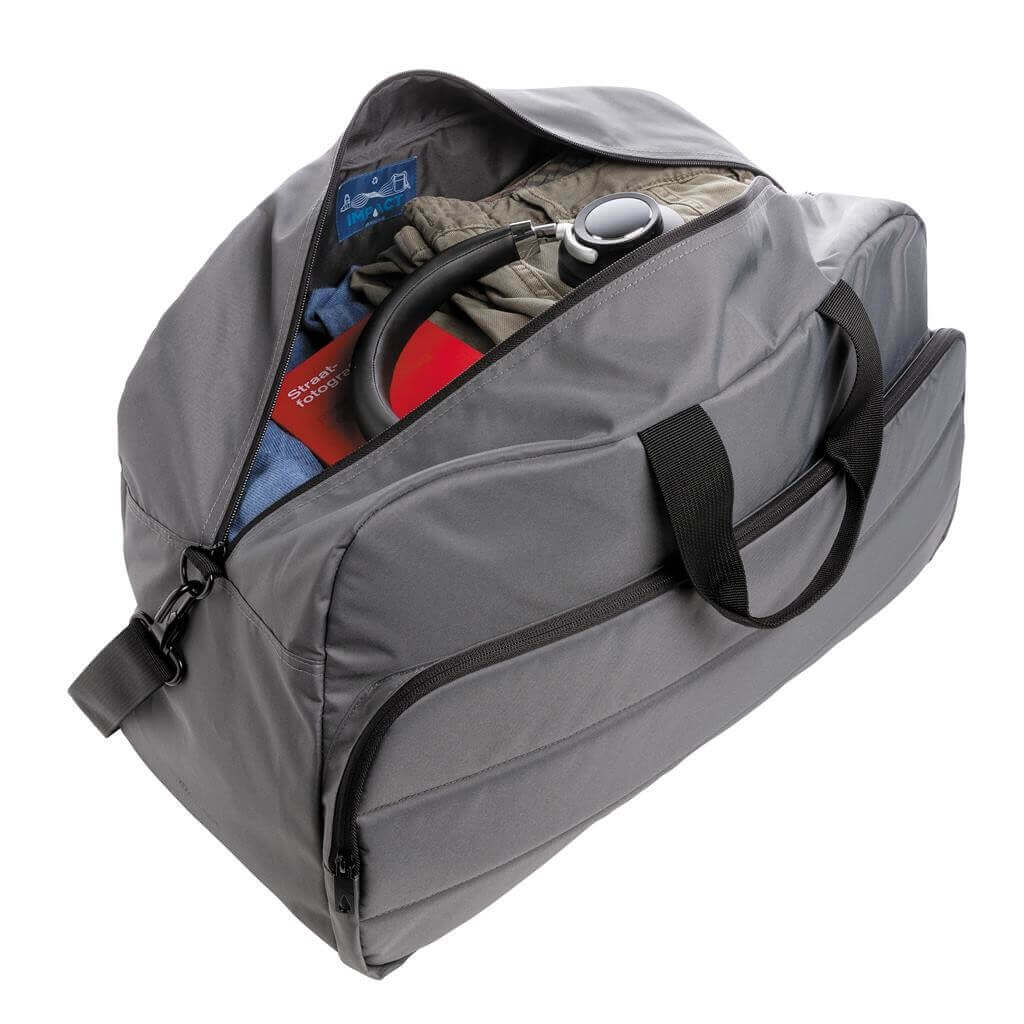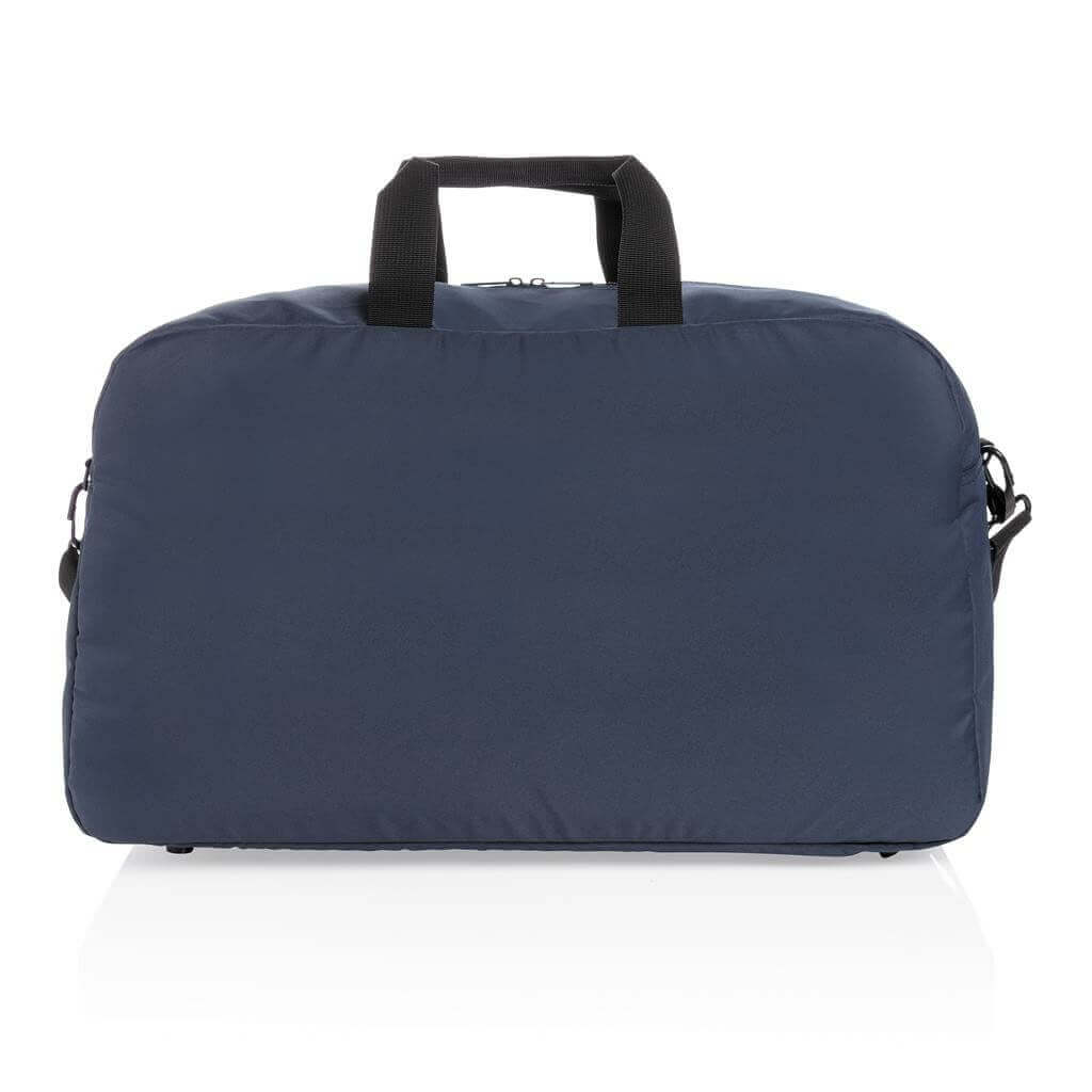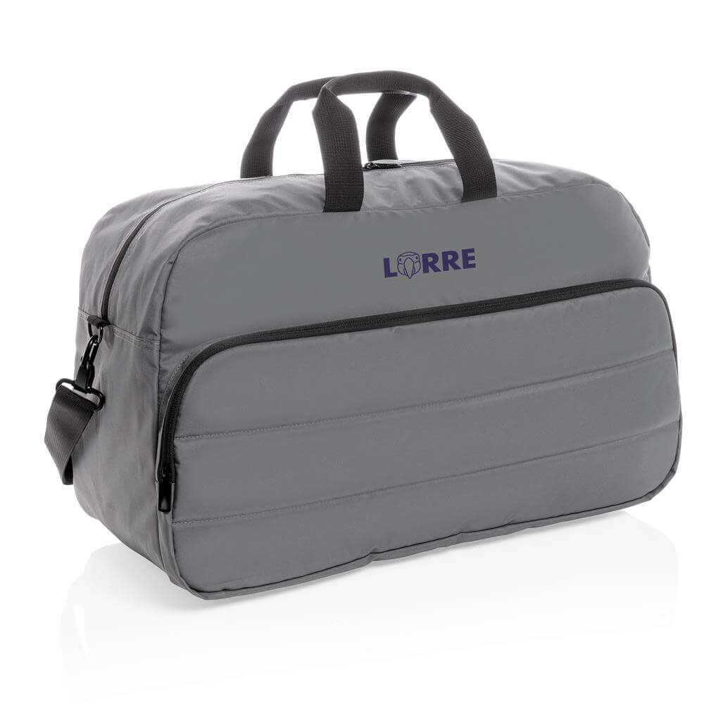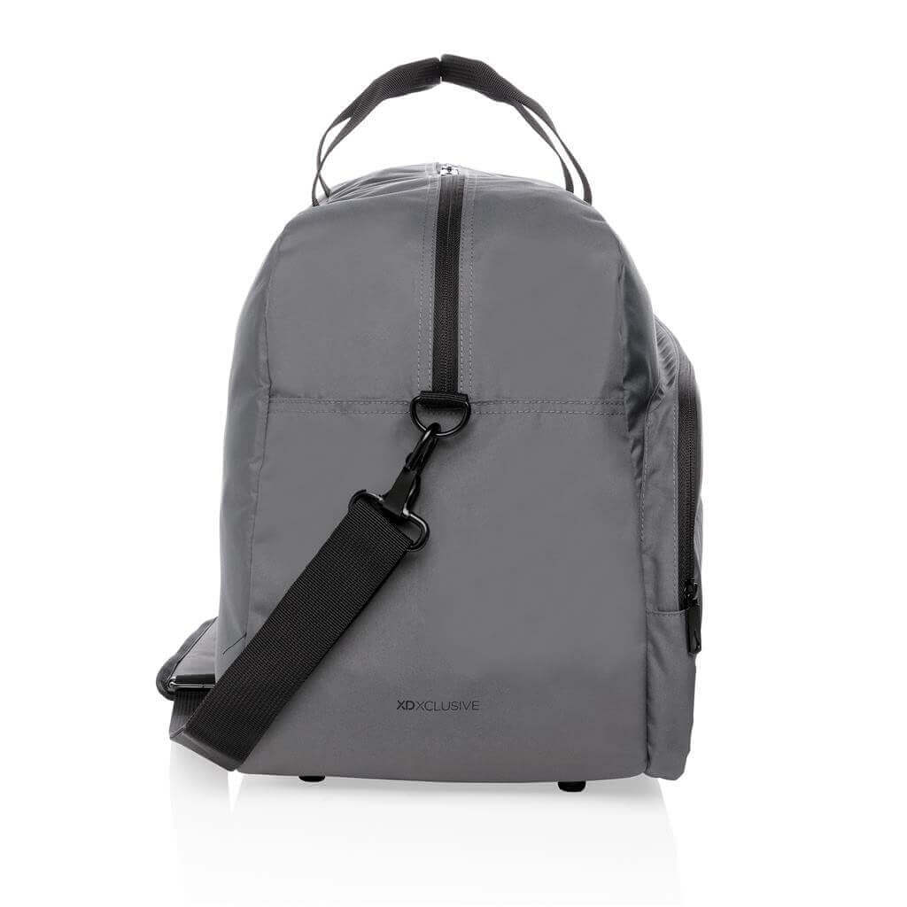 Moderní víkendová taška v jednoduchém čistém designu ideálním na cestování, vyrobená z RPET AWARE™. Rozměrný hlavní oddíl poskytuje dostatek prostoru na krátký výlet, 2 síťové kapsy pro organizaci drobností. Přední kapsa na zip s 2 malými kapsami a 2 poutky na pera. Vnější část i vnitřní podšívka jsou vyrobeny ze 100 % polyesteru AWARE™ získaného z recyklovaných PET lahví. AWARE™ využívá skutečně recyklované materiály, které jsou použitím speciální technologie dohledatelné od jejich zdroje. Recyklace má pozitivní vliv na životní prostředí a při výrobě šetří obrovské množství vody. Bez PVC.