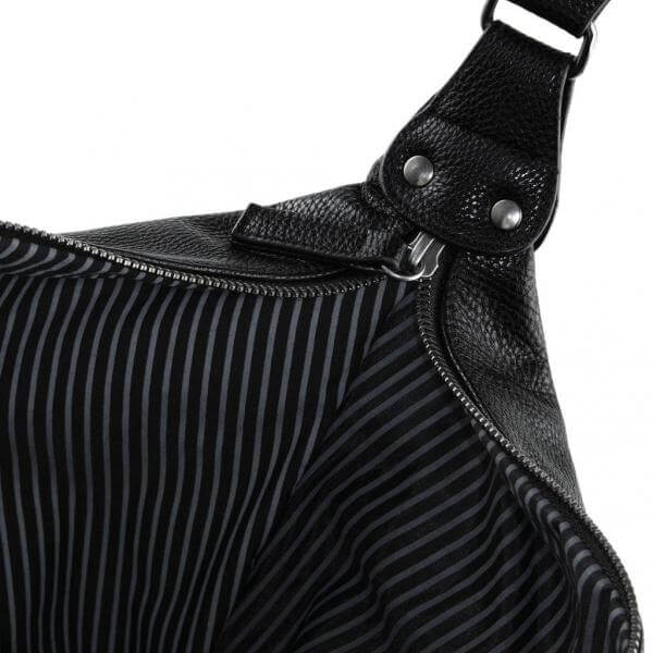 · Rukojeti z odpovídajícího materiálu · extra dlouhý zip na hlavním složce pro snadný přístup · vnitřní kapsa na cennosti · plně podšitá proužkovanou textilií · vnitřní základna · sklopné konce zipu s upevněním s druky · kovový zip · čistěte jen houbou