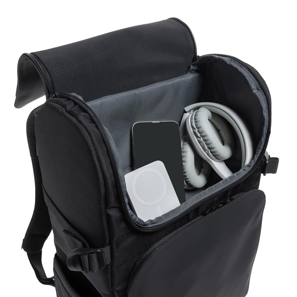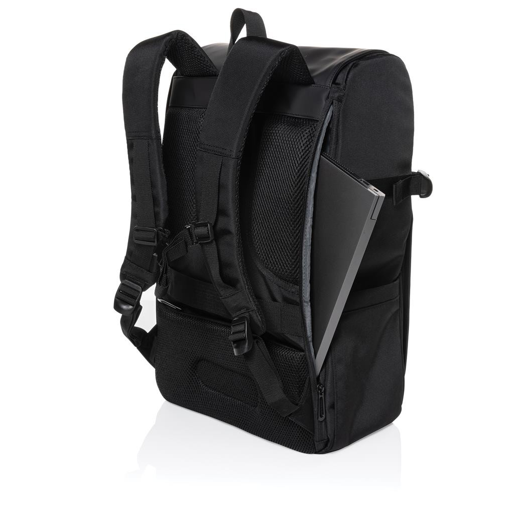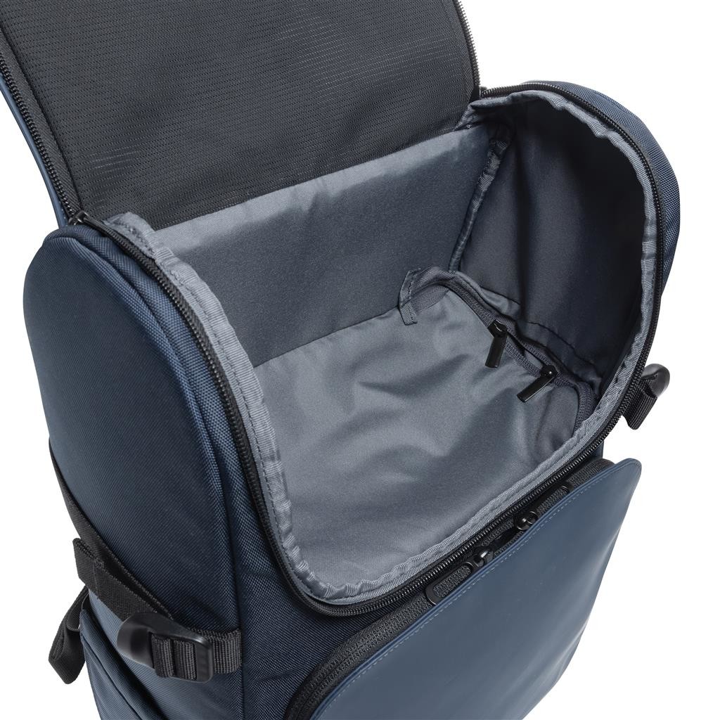 Víkendová taška s objemným hlavním prostorem, 2 velké přední kapsy, 3 síťové kapsy. Otevřením vnitřního zipu lze hlavní prostor dále rozšířit. Polstrovaný oddíl pro až 15,6" notebook je dostupný skrze boční přístup na zip. Vyrobeno z recyklovaného polyesteru včetně skenovatelné složky AWARE™ garantující obsah recyklátu. Z výtěžku každého prodaného produktu je přispěno 2 % na podporu iniciativy Water.org.