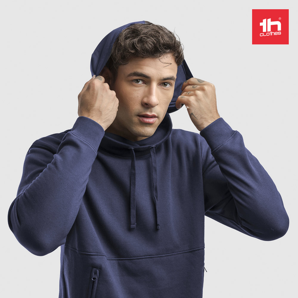 Unisex mikina s kapucí. 50% bavlna a 50% polyester: 320 g/m². S rolákem a taftovou kapucí všitou do límce (s plastovým zapínáním). Žebrování 1x1 na zápěstích a v pase. 2 kapsy s plastovým zapínáním.