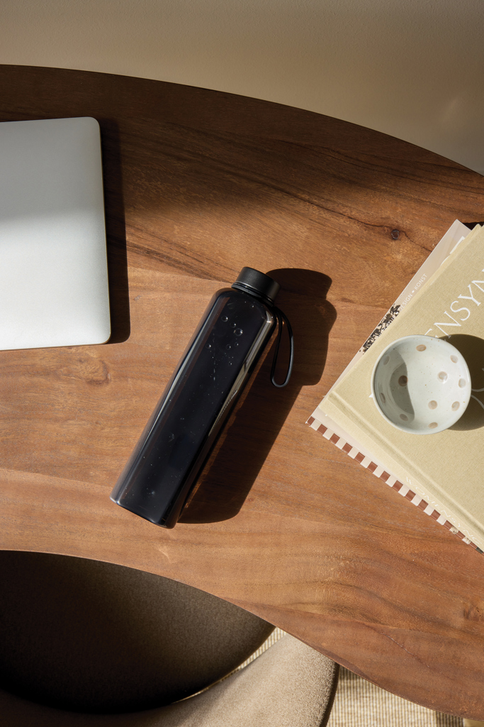 Stylová láhev na vodu s praktickým poutkem. Perfektní pro každou příležitost – do kanceláře i do posilovny. Láhev má jedinečný, tenký a plochý design, který jí dodává moderní a elegantní vzhled a zároveň umožňuje snadné uložení do tašky nebo batohu bez zbytečného zabírání místa. Vyrobeno z recyklovaného PET materiálu o objemu 550 ml. Jen ruční mytí. Určena pouze pro studené nápoje. Certifikováno podle RCS (Recycled Claim Standard), což zaručuje, že celý dodavatelský řetězec recyklovaných materiálů je certifikován. Tento produkt obsahuje 85 % certifikačního certifikátu RCS recyklovaného PET.