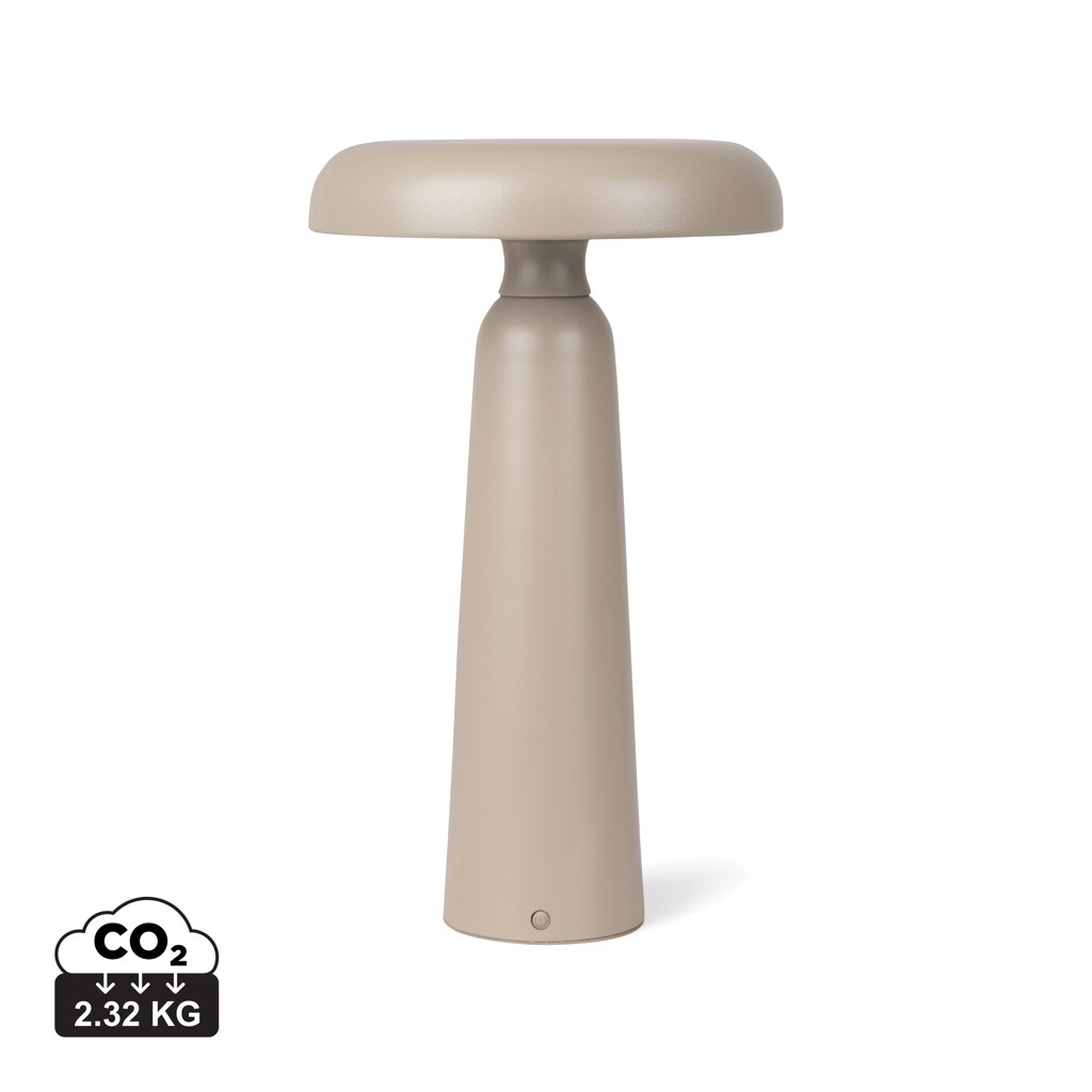 Kompaktní lampa s moderním designem, který dodává výrobku charakter i styl. Vyrobená z kovu a recyklovaného ABS. Lampa má na vrchu dotykovou funkci pro přepínání mezi teplým světlem, bílým světlem a teplým bílým světlem. Nabíjí se přes USB-C, součástí balení je 30 cm nabíjecí kabel TPE Type-C na USB-A a poskytuje až 8 hodin svícení. Certifikace RCS (Recycled Claim Standard) zaručuje, že celý dodavatelský řetězec recyklovaných materiálů je certifikován. Celkový obsah recyklovaných materiálů je založen na celkové hmotnosti výrobku. Tento výrobek obsahuje 7% recyklovaného ABS s certifikací RCS.