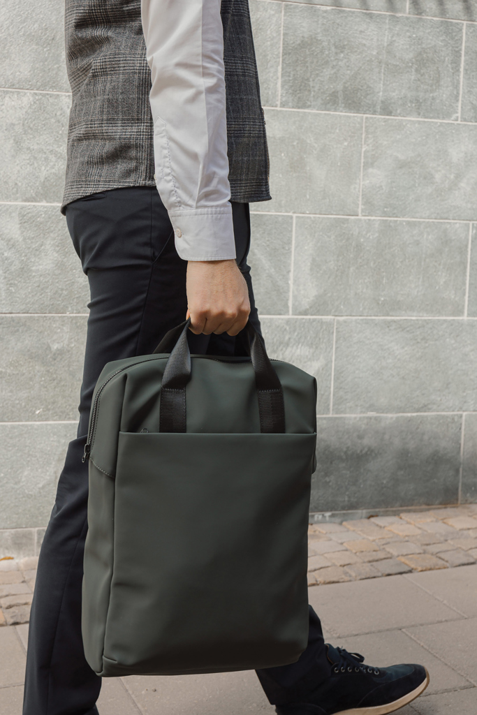 Jednoduše ovladatelná taška s elegantním designem. Můžete ji nosit jako nákupní tašku nebo batoh. Má široké zipové otevírání pro snadné balení notebooku a dalších cenností. Popruh na zadní straně umožňuje připevnění k cestovnímu kufru pro pohodlné cestování. Obsahuje také velkou přední kapsu, vnitřní kapsu a praktický držák na láhev. Certifikováno podle RCS (Recycled Claim Standard), což zaručuje, že celý dodavatelský řetězec recyklovaných materiálů je certifikován. Tento produkt obsahuje 19% RCS-certifikovaného recyklovaného polyesteru.
