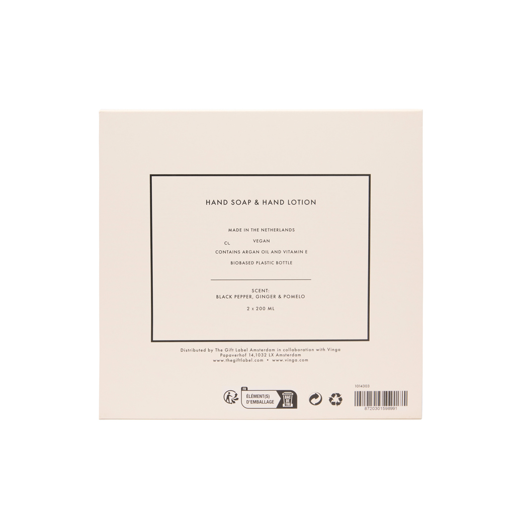 Hebké ruce každý den. Dopřejte si péči o ruce s touto krásně voňavou sadou, která obsahuje dvě 200 ml lahvičky tekutého mýdla a krému na ruce. Vůně černého pepře, zázvoru a pomelu zanechá vaše ruce jemné, vyživené a příjemně provoněné. Dotek, na který se nezapomíná. Elegantně baleno v dárkové krabičce v krémově-bílé a černé barvě.