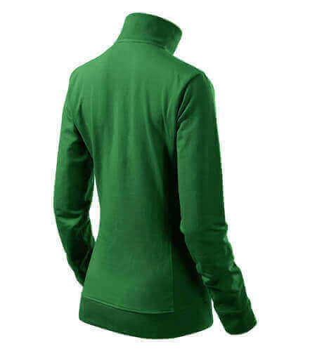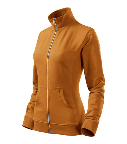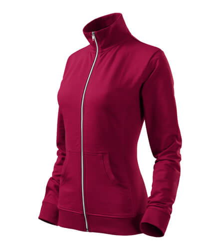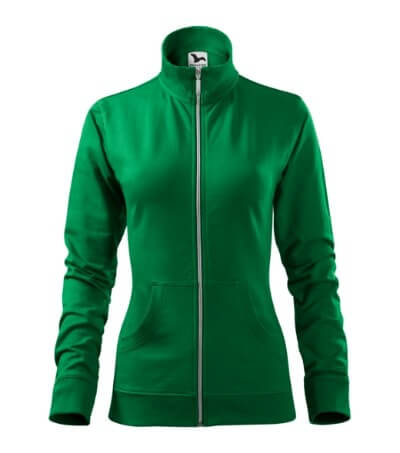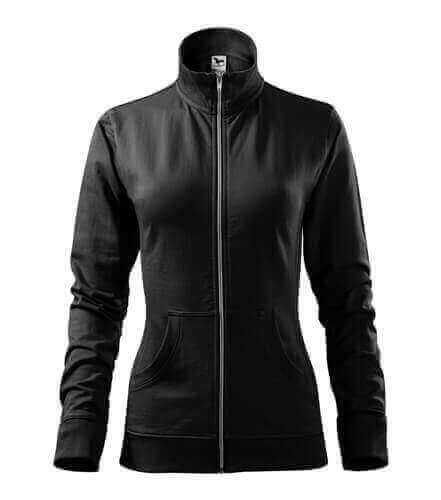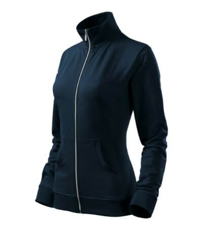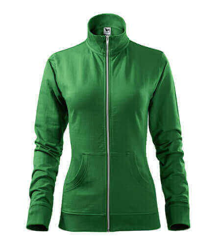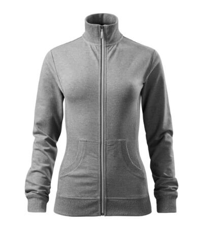 Dámska mikina s golierom z rebrového úpletu. Celoprepínacia so strieborným špirálovým zipsom. Golier v podobe stojáčiku. Hlavicový rukáv. Dve predné vrecká v štýle klokanky. Bočné diely, spodný lem, manžety rukávov a lemy vrecká z rebrového úpletu s prídavkom elastanu. Vhodná na potlač a výšivku.