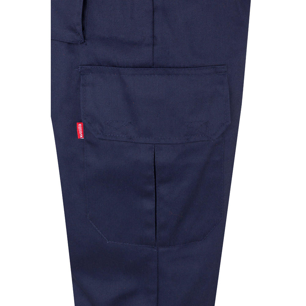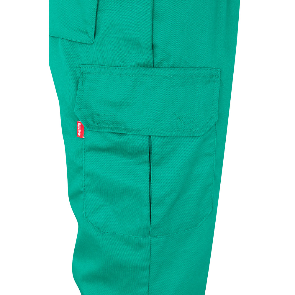 Keprové kalhoty s více kapsami (200 g/m²), z bavlny (35 %) a polyesteru (65 %). S elastickým pasem, reflexními pruhy na spodní části nohavic a šesti kapsami (2 francouzské kapsy, 2 boční klínové kapsy a 2 zadní kapsy). Výrobek v souladu s nařízením EU 2016/425, certifikovaný podle EN17353 a třídy č. B2. Velikost: S, M, L, XL, 2XL, 3XL