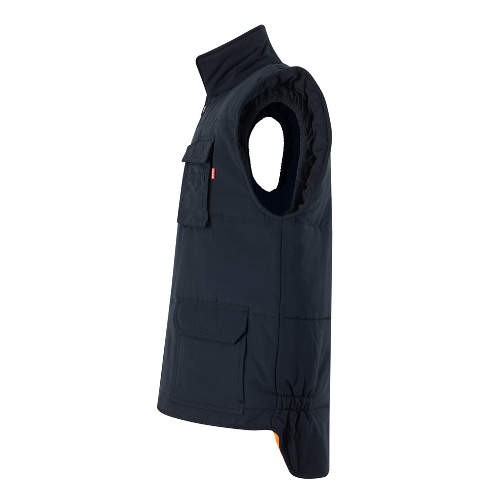 Polstrovaná vesta (220 g/m²), oboustranná a vícekapsová, z polyesteru (100 %), s oboustranným zipem a tahákem. Oboustranná část má reflexní pruhy na trupu a větruodolné pruhy na průramku. Vesta má boční pas a šest kapes (2 náprsní kapsy a 2 spodní kapsy). Výrobek v souladu s nařízením EU 2016/425, certifikovaný podle EN20471 a třídy č. 1. Velikost: S, M, L, XL, 2XL, 3XL