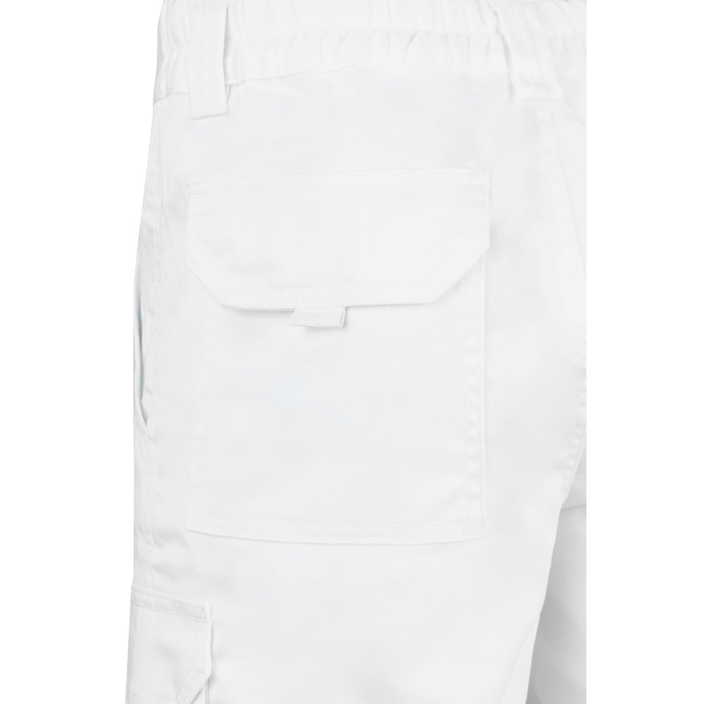 Strečové bermudy s více kapsami (240 g/m²), z bavlny (46 %), EME (38 %) a polyesteru (16 %). S elastickým pasem a šesti kapsami (2 francouzské kapsy, 2 boční klíny a 2 zadní kapsy). Velikost: 34, 36, 38, 40, 42, 44 ,46, 48, 50, 52, 54, 56, 58, 60