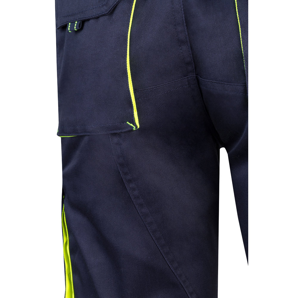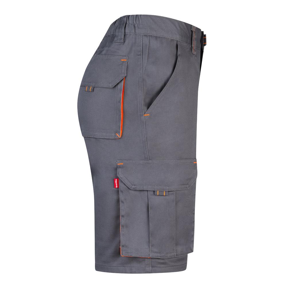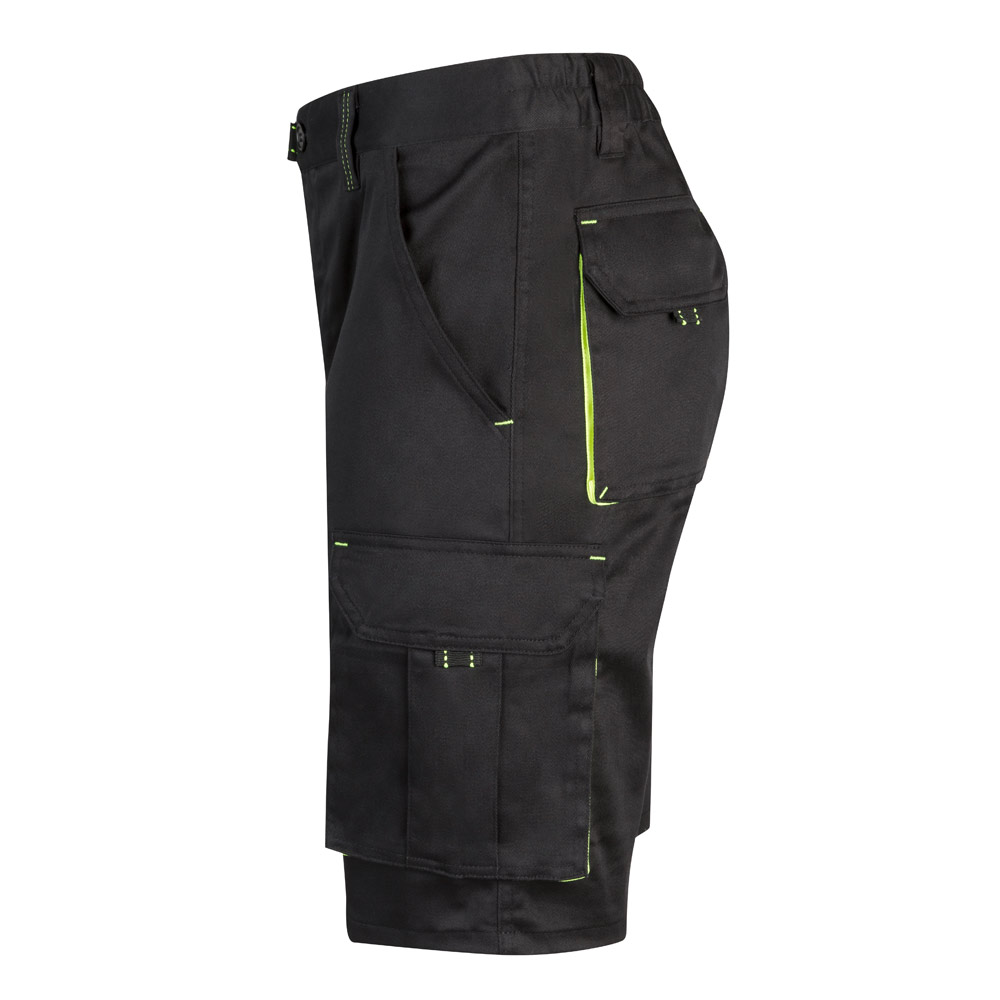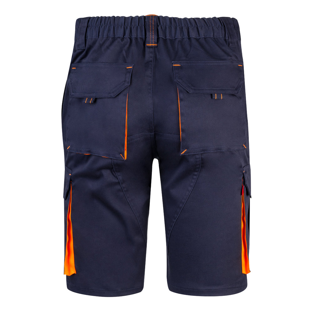 Dvoubarevné strečové bermudy s více kapsami (240 g/m²), z bavlny (46 %), EME (38 %) a polyesteru (16 %). S elastickým pasem, kontrastní barvou na klínech, stahovacím poutkem a prošíváním a látkovým zesílením vzadu. Obsahuje šest kapes (2 francouzské kapsy, 2 boční klínové kapsy a 2 zadní klínové kapsy). Velikost: 34, 36, 38, 40, 42, 44, 46, 48, 50, 52, 54, 56, 58, 60