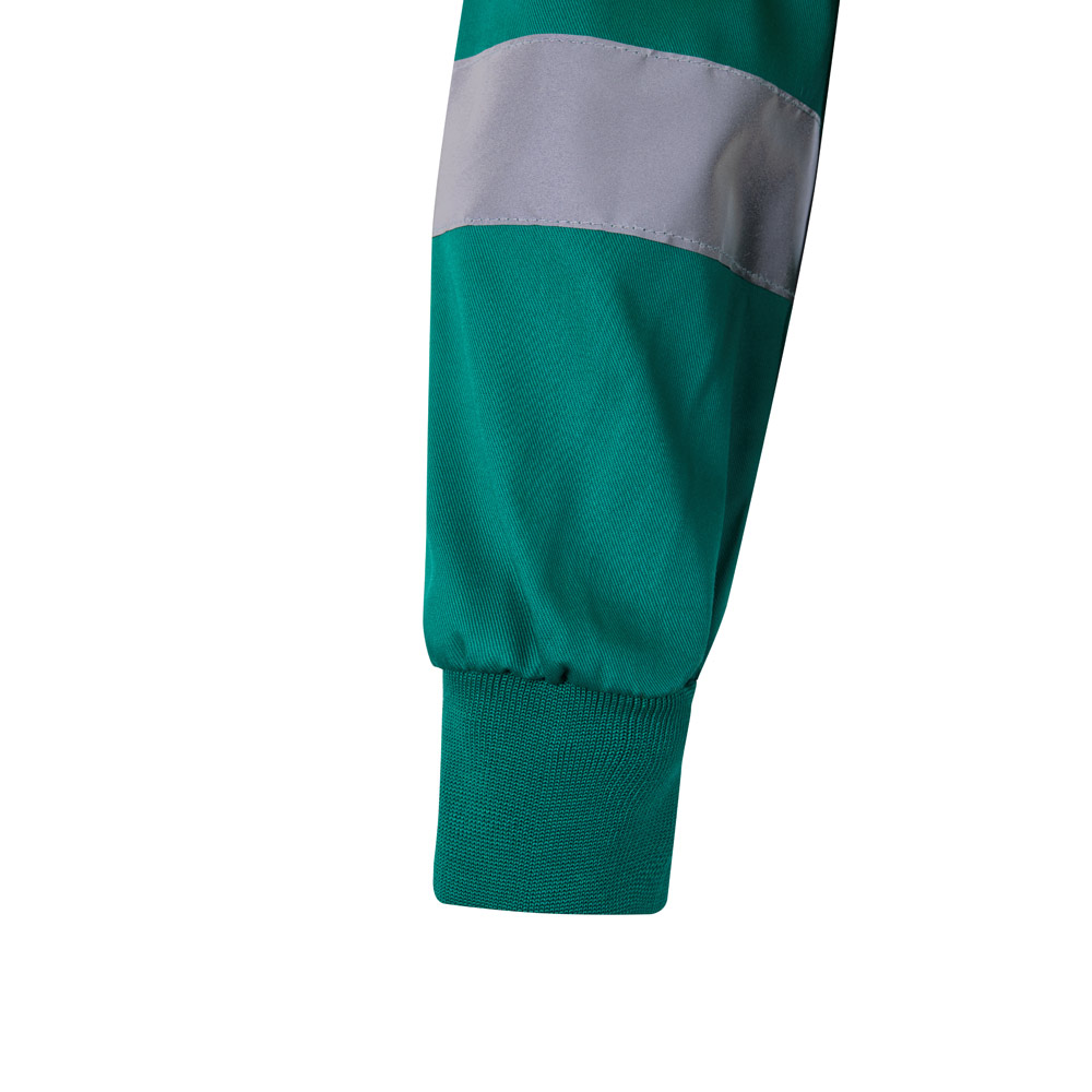 Dvoubarevná keprová bunda (210 g/m²) z polyesteru (80%) a bavlny (20%). Centrální zip, elastický boční pas a žebrované manžety. Reflexní pruhy na trupu a rukávech a dvě náprsní kapsy na zip. Výrobek v souladu s nařízením EU 2016/425, certifikovaný podle EN20471 a třídy č. 2. Velikost: S, M, L, XL, 2XL, 3XL