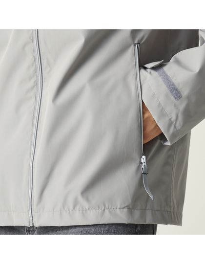 Vodotěsná a prodyšná 100 % polyesterová tkanina potažená Isotexem 10000. Tělo se síťovanou podšívkou. Skrytá kapuce. 2 spodní kapsy na zip a vnitřní chránič zipu. Skrytý vstup k zipu pro přístup k výšivce. Vyrobeno z recyklovaných materiálů.
