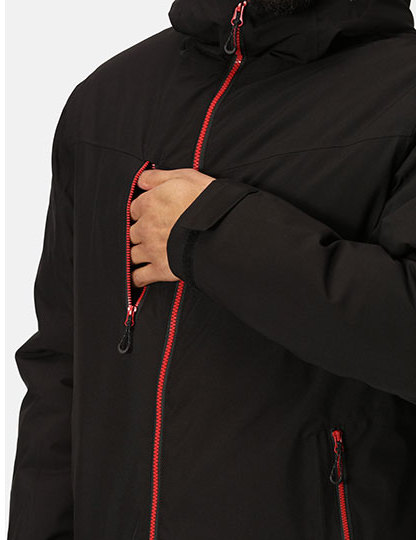 Vodotěsná a prodyšná 4směrná strečová tkanina Isotex 10000 ze 100% recyklovaného polyesteru s podlepenými švy | 100% recyklovaná izolace Thermoguard | Neodnímatelná nastavitelná kapuce, nastavitelný lem a manžety a kontrastní detail zipu | Více kapes včetně vnitřní bezpečnostní kapsy na zip a zip pro přístup k výšivce | Odstřihávací štítek.