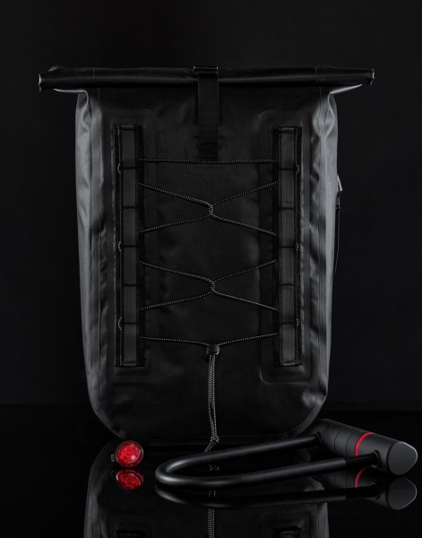 ·100% polyester (recyklovaný, 600D) ·Nepromokavá tkanina ·Vypolstrované, nastavitelné ramenní popruhy ·Zapínání na zip ·Vodotěsný hlavní oddíl ·Elastické poutka s reflexními prvky ·Boční kapsa na zip ·Snadné přejmenování ·Kapacita: 18 litrů ·Rozměry : 31 x 46 x 12,5 cm ·Max. Tisková plocha: 14 x 7 cm.