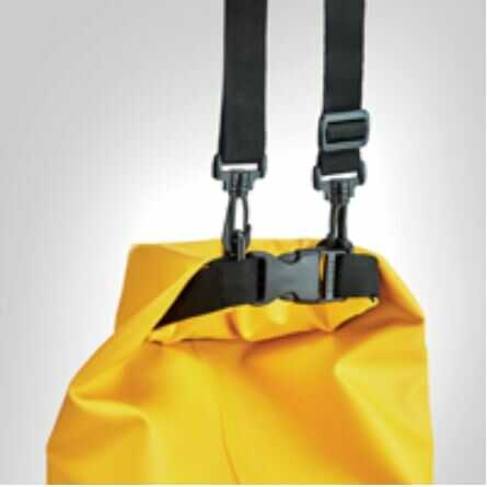 Vodotěsný vak z PVC (0,36 mm). Objem 1,5 l, s volitelným nastavitelným ramenním popruhem. Kapsa lze plnobarevně oboustranně potisknout, vyjmout barevný popruh, síťku či zip. K vaku lze přidat nasavitelný ramenní popruh v černé barvě za příplatek.