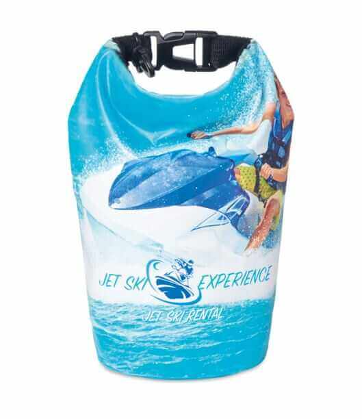 Vodotěsný vak z PVC (0,36 mm). Objem 5,8 l, s volitelným nastavitelným ramenním popruhem. Kapsa lze plnobarevně oboustranně potisknout, vyjmout barevný popruh, síťku či zip. K vaku lze přidat nasavitelný ramenní popruh v černé barvě za příplatek.