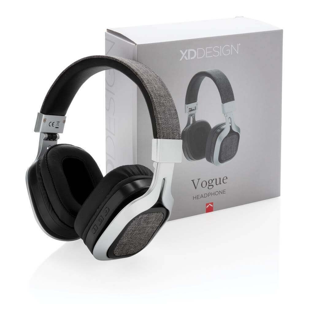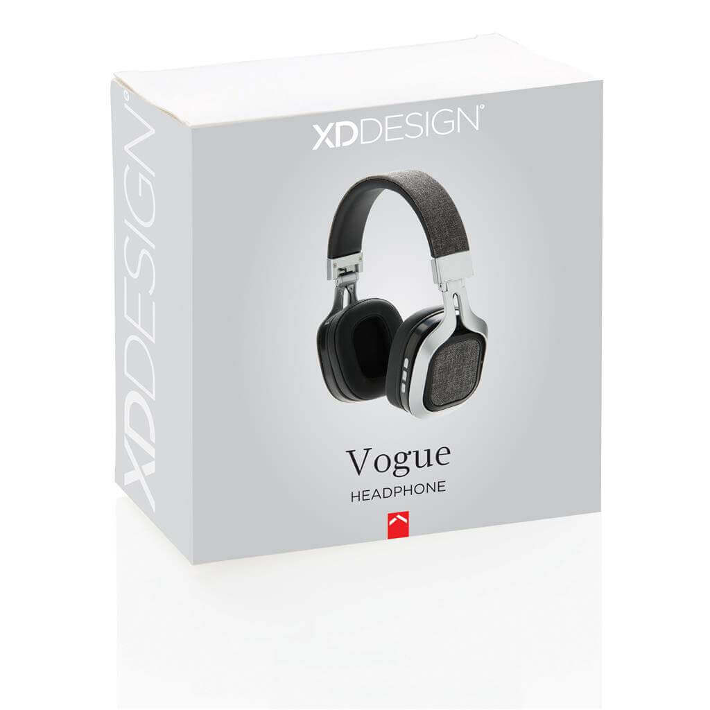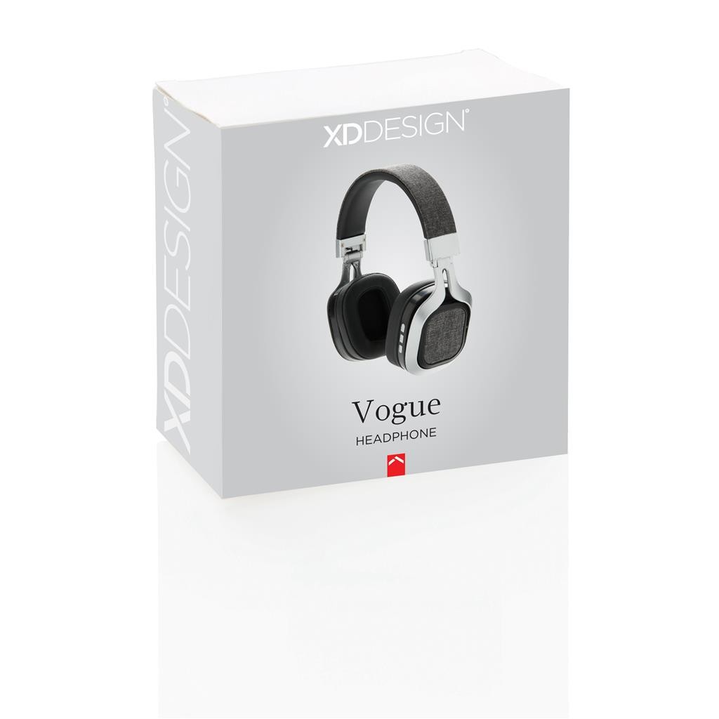 Vogue jsou trendy látková sluchátka přes hlavu. Díky tomu, že zcela přiléhají na uši, poskytují dokonalý zvukový zážitek a jsou velice pohodlné. Díky trendy látce na vnější straně a pohodlným polštářkům z PU v oblasti uší a čelenky jsou dokonalé pro dlouhodobé použití. Sluchátka lze složit a jsou proto ideální na cesty. Využívají Bluetooth 4.0 pro ideální připojení do vzdálenosti až 10 metrů. S vestavěnou 200mAh baterií pro poslech vaší oblíbené hudby po dobu až 6 hodin. S funkcí handsfree pro přijímání hovorů. Včetně kabelu micro USB. Ochranný vzor® 1 baterií typu Li-ion v balení,