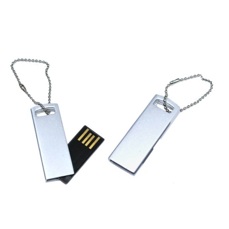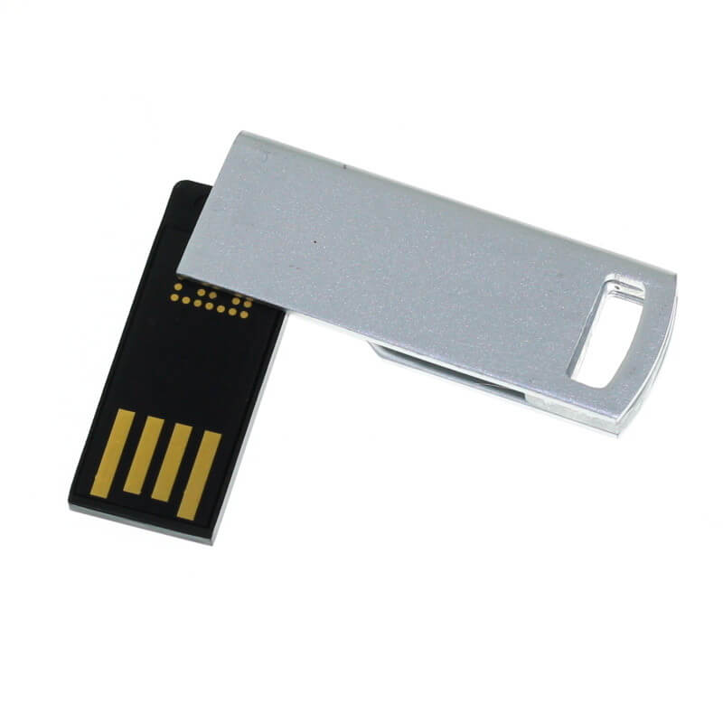 Výklopný mini USB flash disk, kombinace kovu a plastu, vhodný pro tampon tisk, nebo laser. Možno připojit šňůrku, kroužek nebo karabinku.