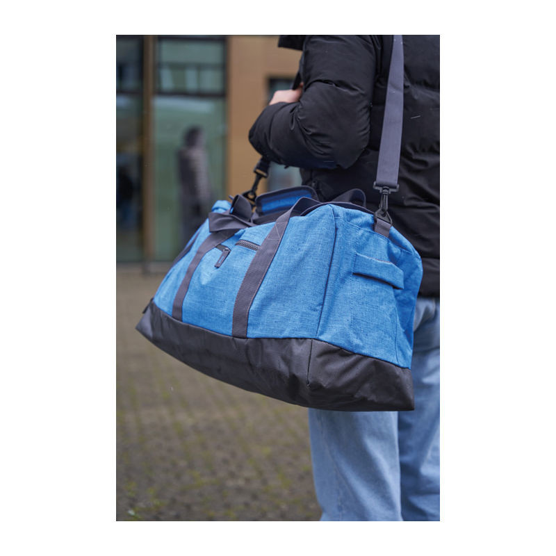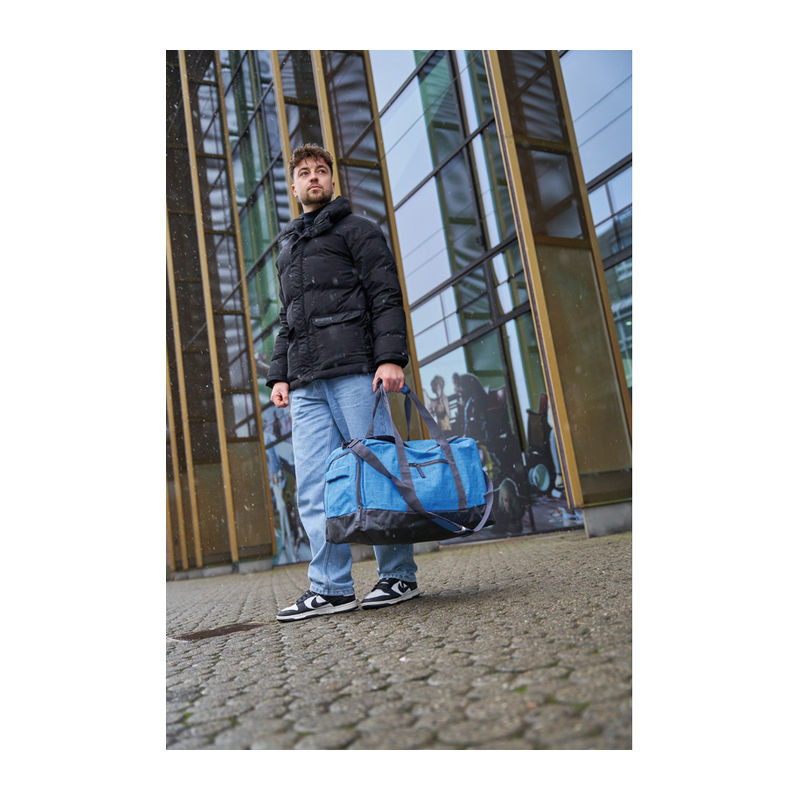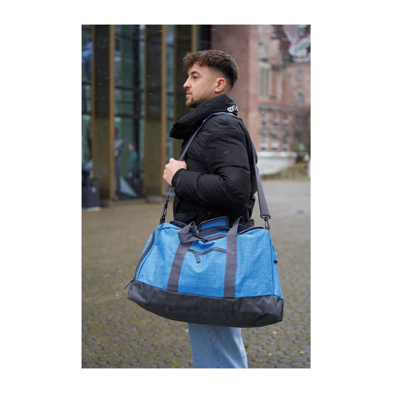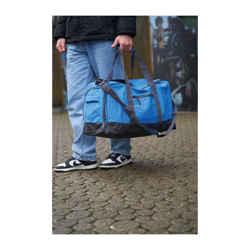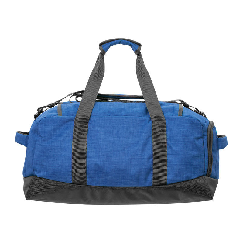 Kvalitní cestovní nebo sportovní taška z PVC 1680D materiálu, taška má extra boční přihrádku na boty nebo mokré šaty, přední kapsa, aby byly důležité věci po ruce a prostornou hlavní část. Jako potisk doporučujeme sítotisk.