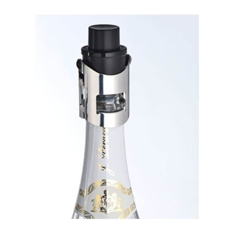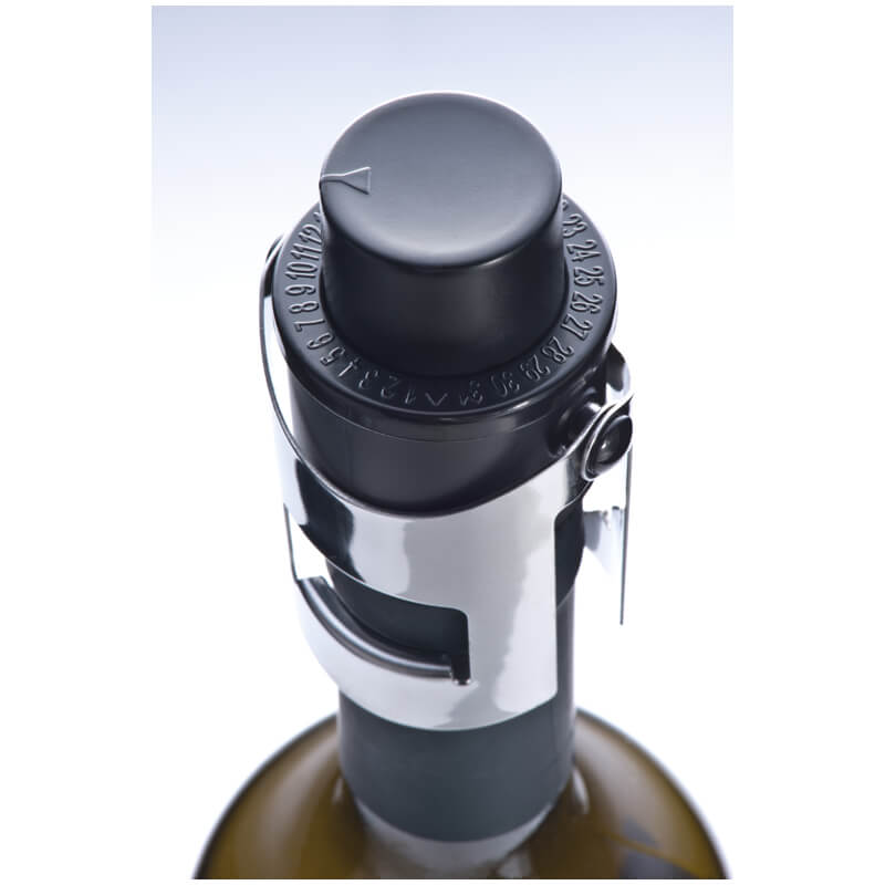 Vysokotlaká zátka s kovovou svorkou - pomocí kterého oxidu uhličitý zůstává v láhvi. Na vrcholu zátky můžete nastavit přesné datum, kdy byla láhev vložena do chladničky. Vaše logo budeme gravírovat.
