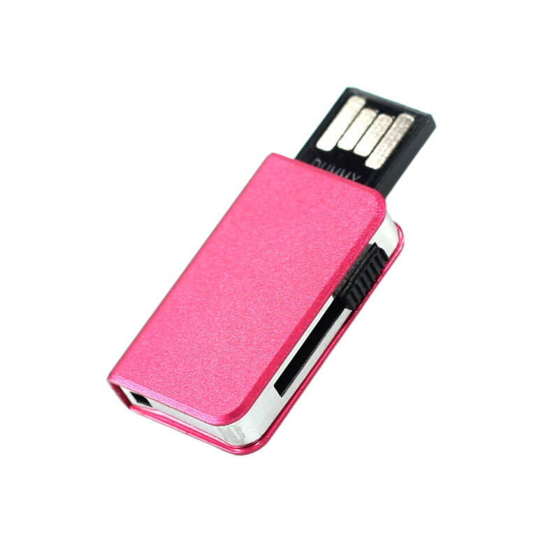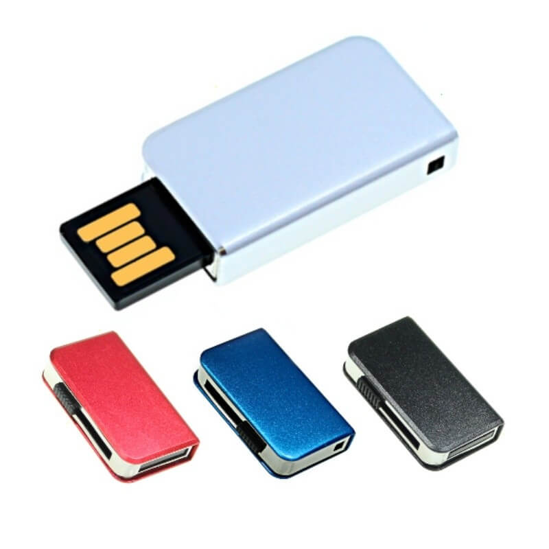 Výsuvný kovový mini USB flash disk, dostupný v několika metalických barvách. Vhodný pro potisk, nebo laser loga. Možno připojit šňůrku na klíče nebo na krk. Skvělý design, praktický a odolný model!