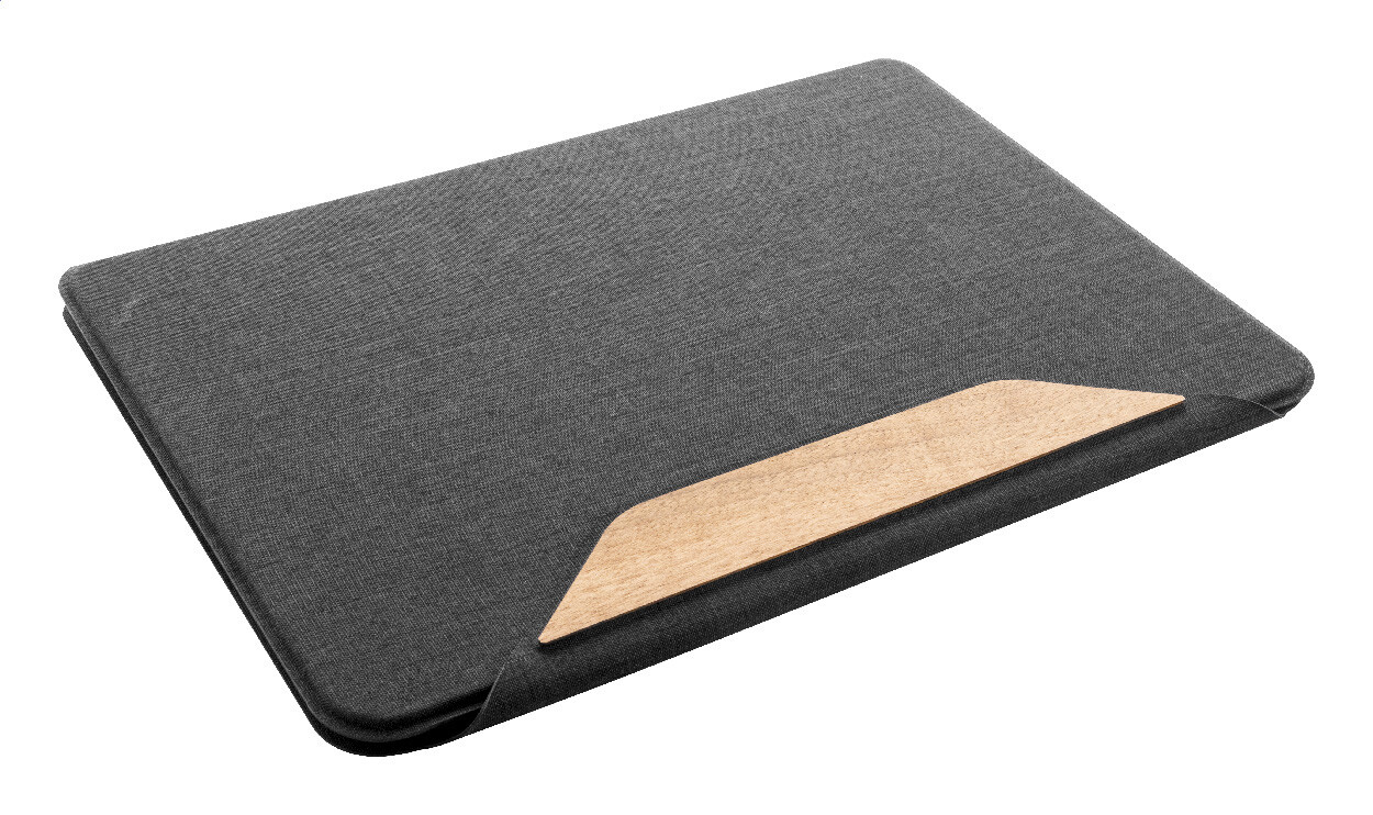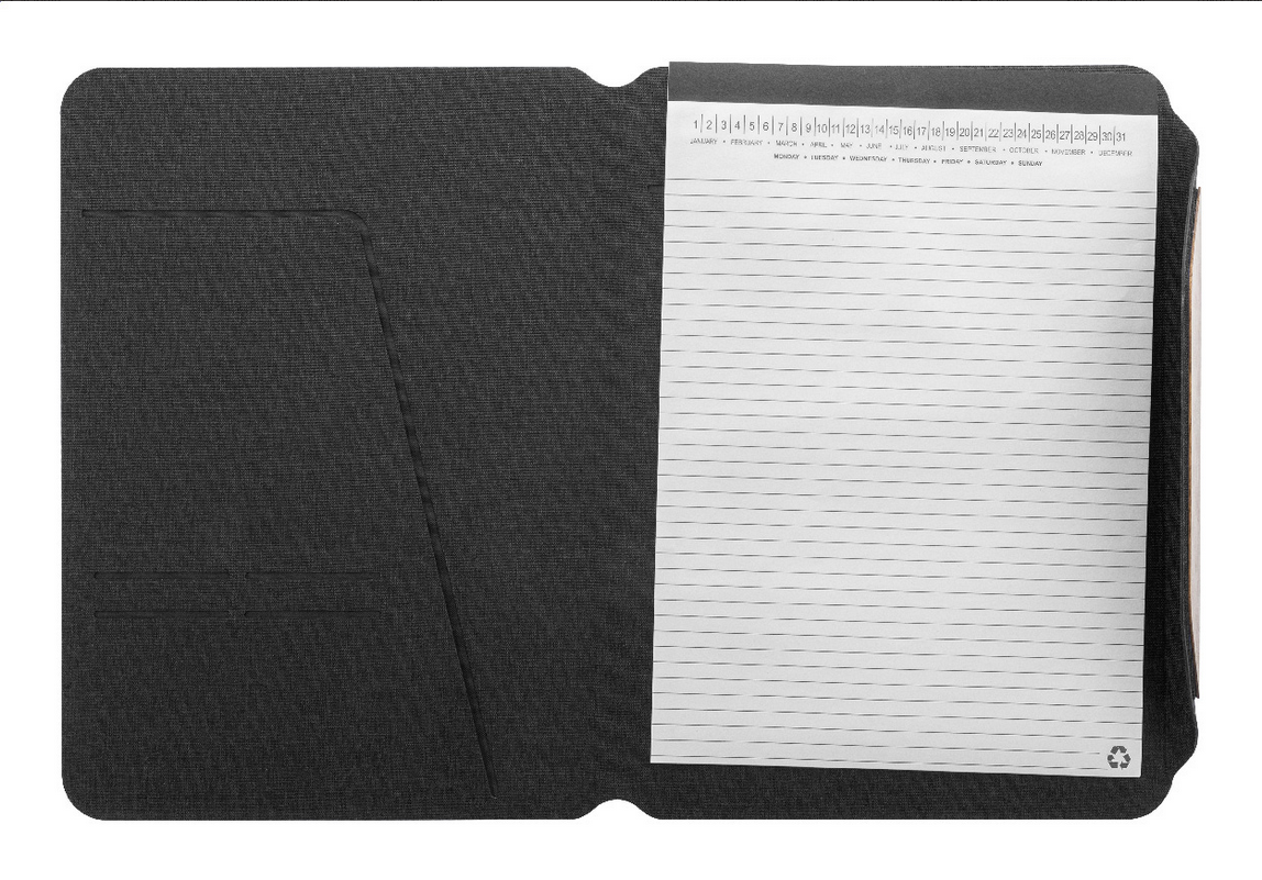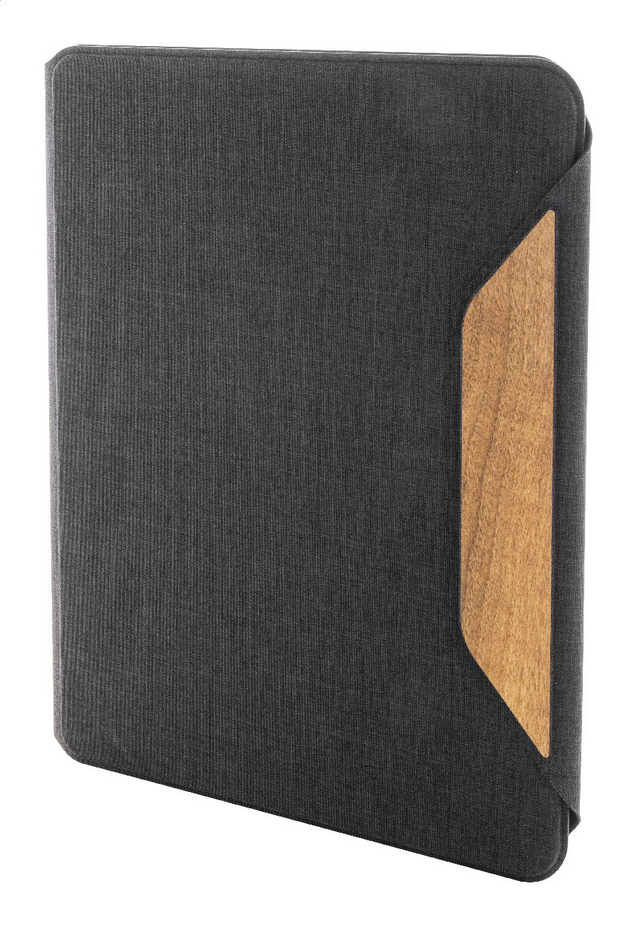 Složka na dokumenty A4 z RPET polyesteru s několika vnitřními kapsami a magnetickým zapínáním s detaily z ořechového dřeva. S linkovaným blokem z recyklovaného papíru s 20 listy. New. Go Green. Formát velikosti: A4. Typ sešitového papíru: Linkované listy