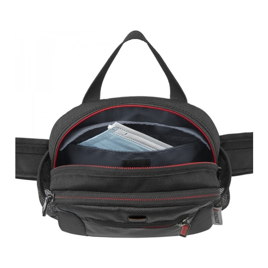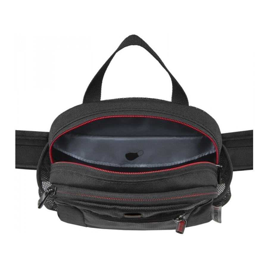 Prakticky navržená taška na opasek s integrovaným panelem, který drží vše na svém místě. Taška má dvě boční kapsy ze síťoviny, přihrádku QuickAccess na zip a vyhrazenou kapsu na masky s antibakteriální podšívkou, které dotváří mimořádně dobře uspořádaný interiér.