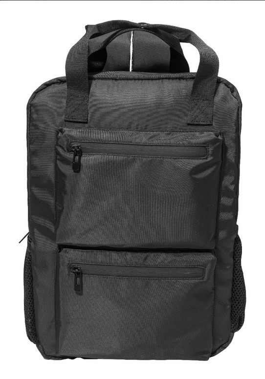 Batoh z RPET s přihrádkou na zip, 2 předními kapsami na zip, polstrovanou přihrádkou na notebook (15") a bočními síťovanými kapsami. S polstrovanými zády a ramenními popruhy, kapsou proti krádeži a rolovacím popruhem. Keprový polyester RPET s výrazným štít. Objem tašky: 12.5 l
