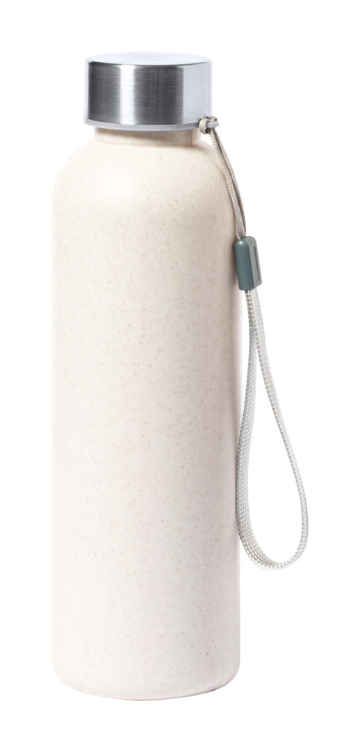 Sportovní PE plastová láhev s nerezovým víčkem a popruhem na přenášení, 600 ml.