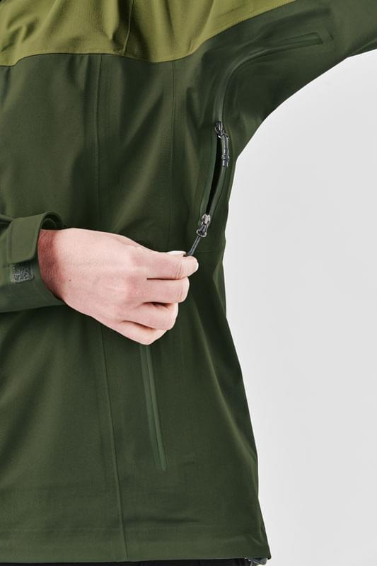 - 180 g/m² -55 % polyester, 45 % polyester (recyklovaný) - Mechanická strečová vazba na 100% recyklovaný polyesterový jednoduchý žerzej - Plně podlepené švy - Kompatibilní s přilbou - Předtvarované lokty - Voděodolné dvoucestné zipy v podpaží - Středový přední zip YKK® AquaGuard® - Třívrstvá vnější nepromokavá/prodyšná vrstva STORMTECH H2XTREME® 20000/10000