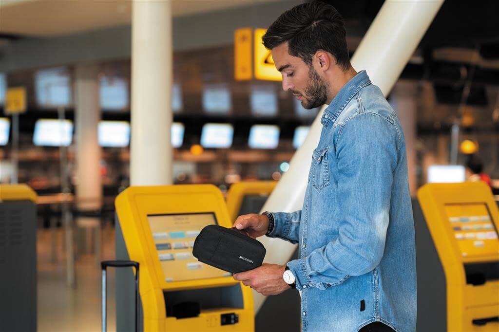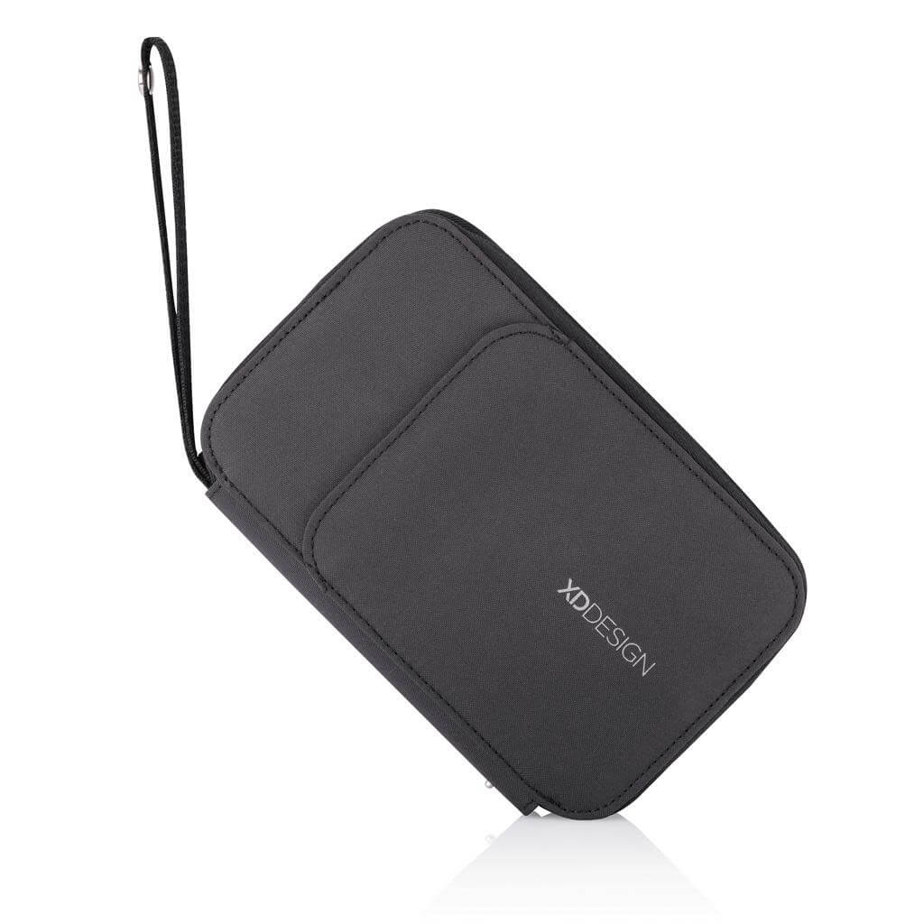 Cestovní peněženka s prostorem na uchování cestovního pasu a dalších cenností. Přední kapsa na magnetické zavírání s RFID ochranou pro uchování cestovního pasu. Speciální funkce umožňuje využití jako stojánek na telefon pro sledování filmů na cestách. Vnitřní úschovný prostor 3 v 1 lze využít jako peněženku nebo obal na telefon. Pasuje na velikost až 5,5". Vyrobeno z recyklovaných materiálů. Ochranný vzor®.