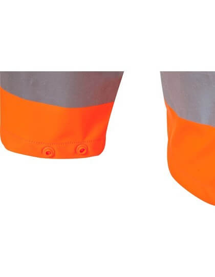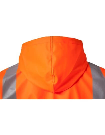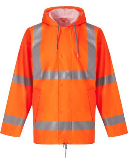 300D polyester | Odpovídá EN ISO20471: 2013 třída 3 a EN343 třída 3.3 | Vyrobeno z jemného prodyšného PU potahovaného vnějšího materiálu s podšívkou ze síťoviny | 3M teplem zpevněné reflexní pásky kolem těla a paží | Jeden popruh přes každé rameno | Kapuce | Elastické manžety | Dvě spodní kapsy | Stahovací šňůra v lemu | Sešité a potažené švy | Výrobce garantuje reflexní vlastnost podle normy EN pro 25 mycích cyklů při 40 ° C