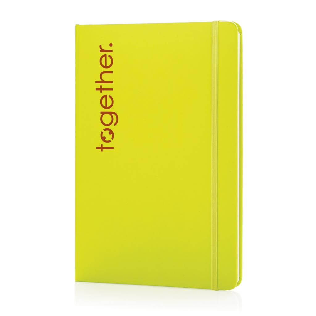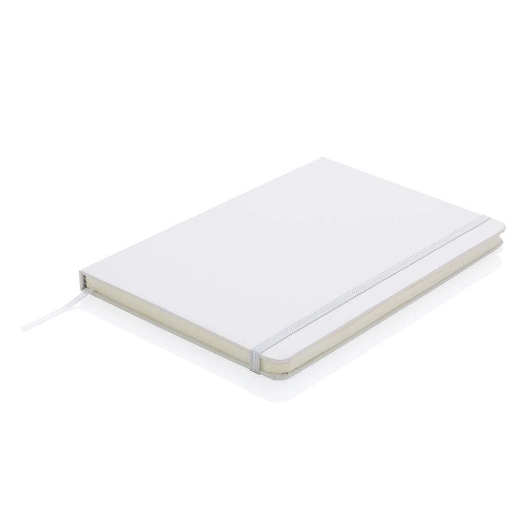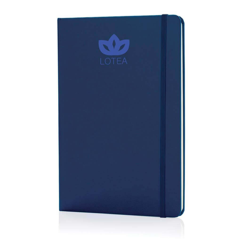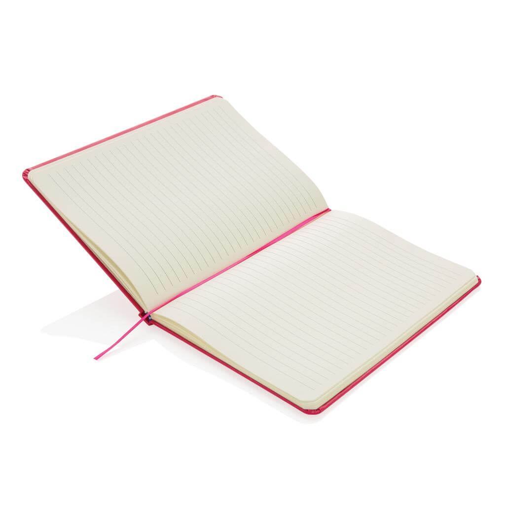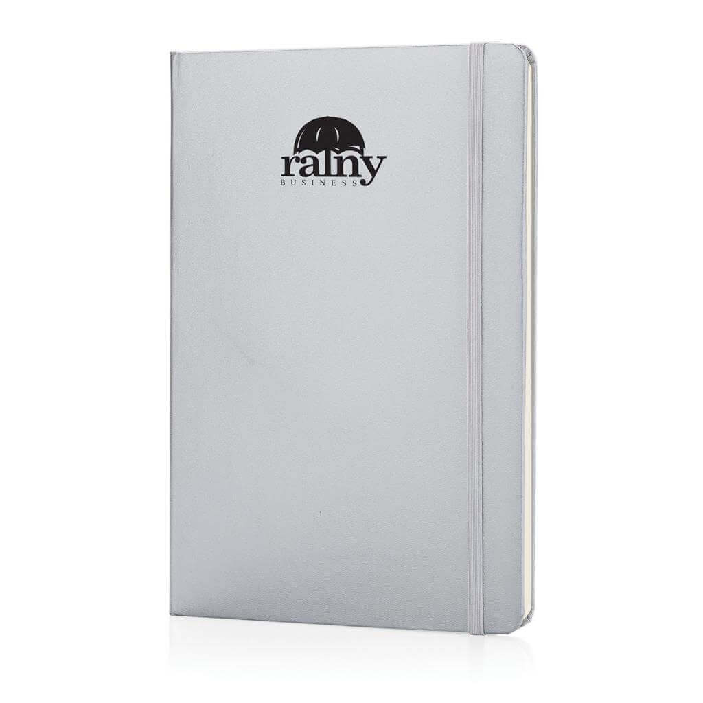 Linkovaný základní poznámkový blok A5 s pevnými deskami s elastickým zavíráním a záložkou ze stuhy. 144 listů papíru s gramáží 70 g/m2. Krémové stránky. PMS color 1: Black PMS color 1: 428 PMS color 1: White PMS color 1: Red 032 PMS color 1: 286 PMS color 1: 282