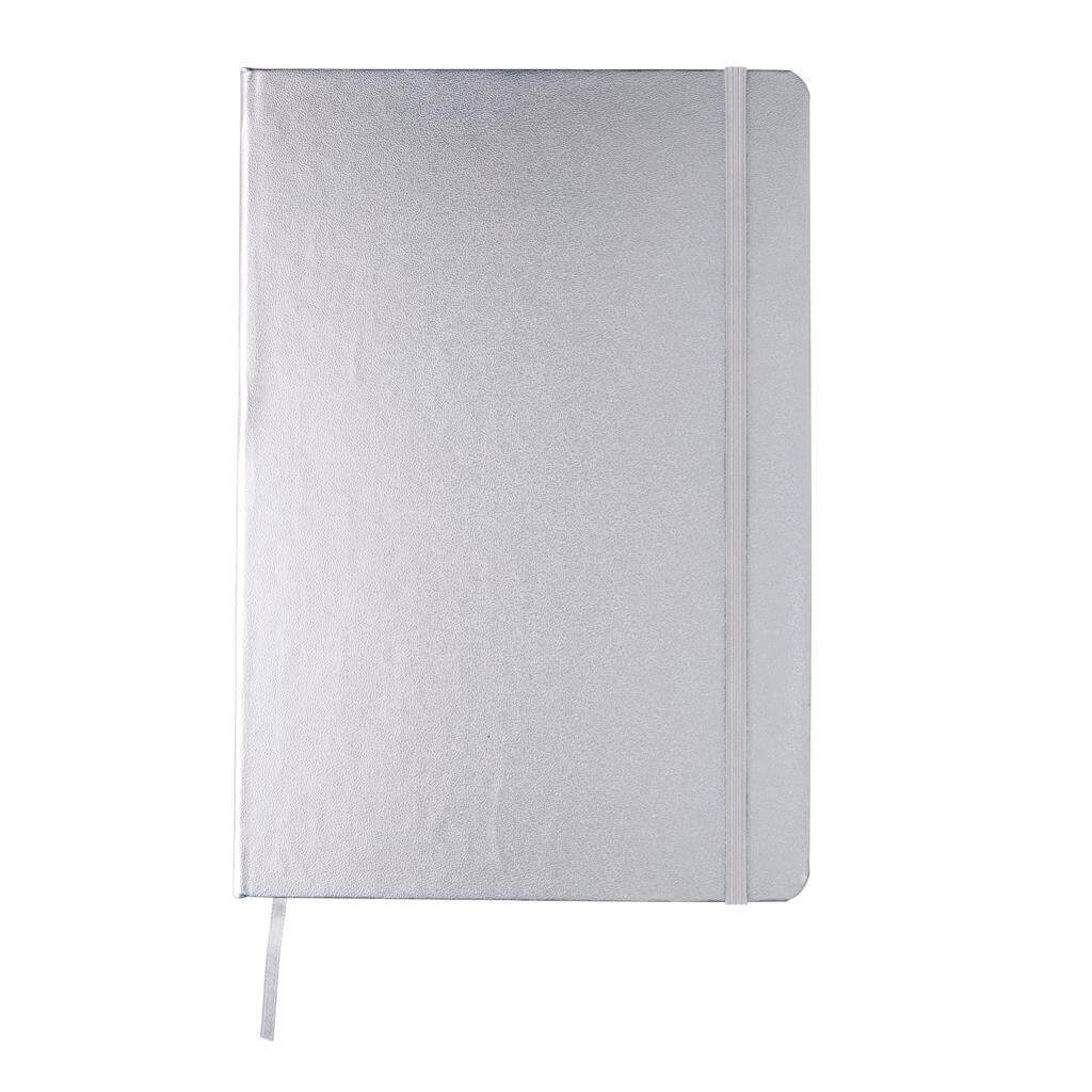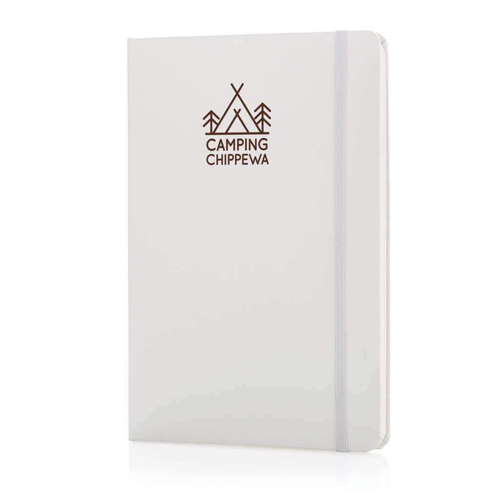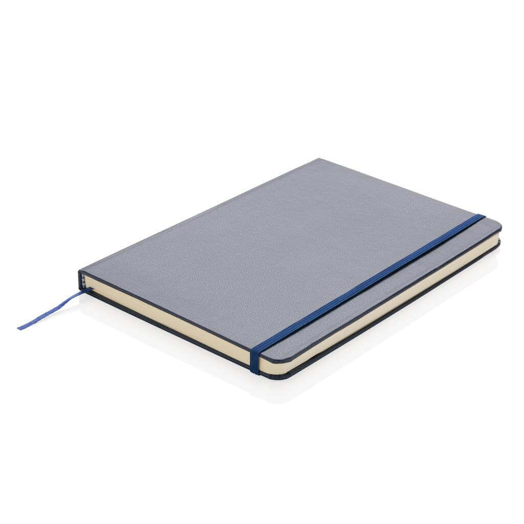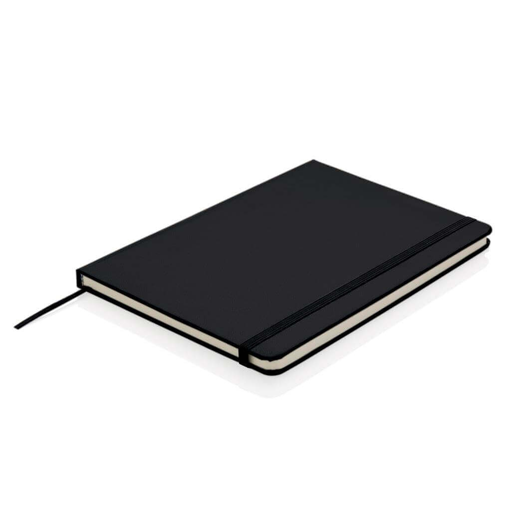 Linkovaný základní poznámkový blok A5 s pevnými deskami s elastickým zavíráním a záložkou ze stuhy. 144 listů papíru s gramáží 70 g/m2. Krémové stránky. PMS color 1: Black PMS color 1: 428 PMS color 1: White PMS color 1: Red 032 PMS color 1: 286 PMS color 1: 282