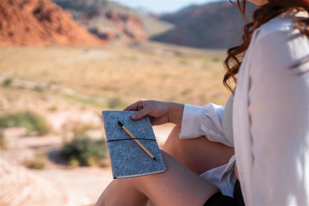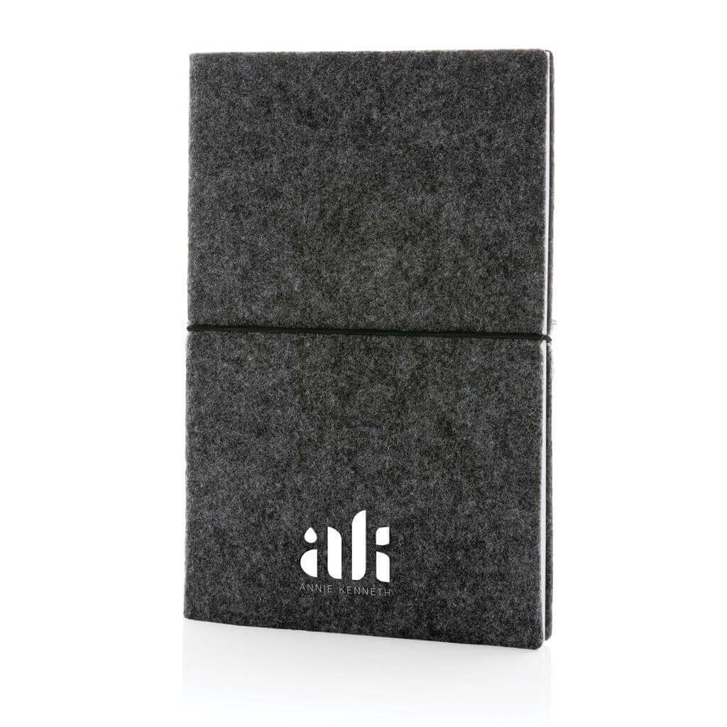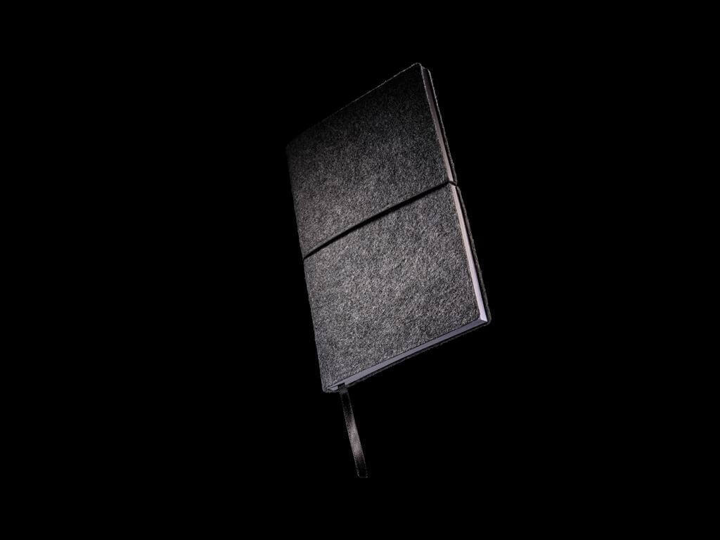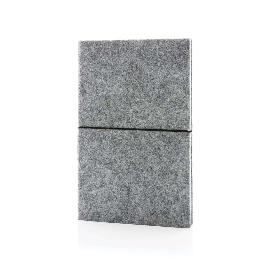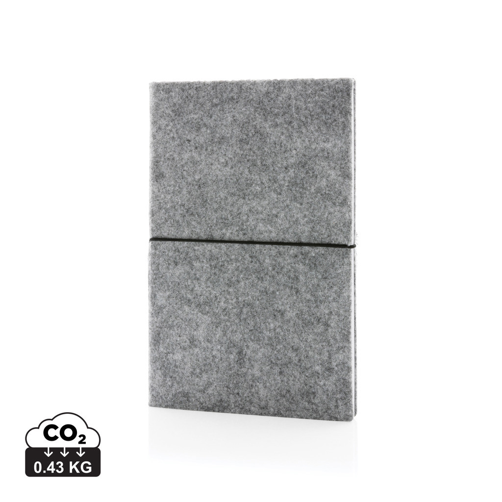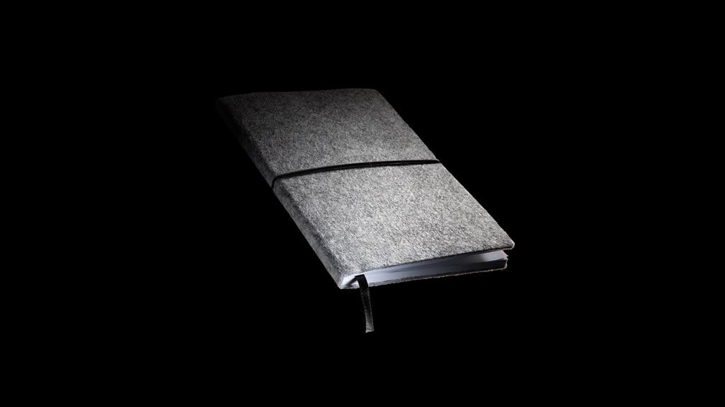 Originální zápisník s obalem ze stylové recyklované plsti. Obal i obsah tvoří GRS recyklované materiály. GRS (Global Recycle Standard) je globální standard, který umožňuje ověřit použití recyklovaného materiálu v produktu napříč celým dodavatelským řetězcem. Celkový podíl recyklátu dle váhy produktu: 99 %. Obsahuje 80 listů/160 stran linkového papíru s gramáží 70 g/m2.