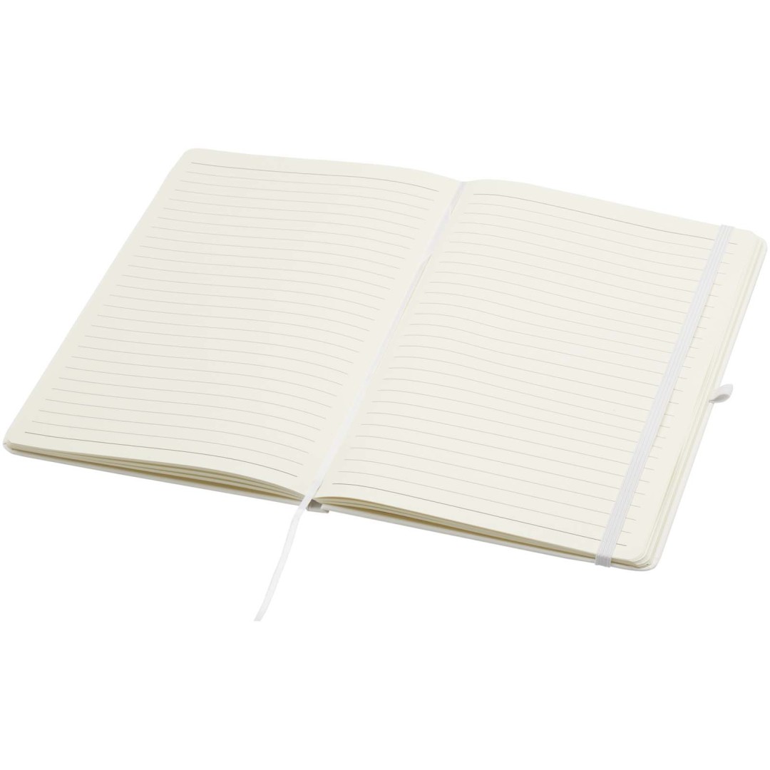 Zápisník Spectrum Plus A5 s pevnou obálkou a zaoblenými rohy je nejen skvělým pomocníkem v kanceláři, ale také ideální příležitostí k propagaci vaší značky. Lepenkový zápisník má na dotek měkkou obálku a 80 linkovaných listů v krémové barvě o gramáži 70 g/m², což je ideální pro zapisování rychlých nápadů nebo podrobných poznámek. Zápisník má poutko na pero, elastický uzávěr, záložku a rozšiřitelnou kapsu.