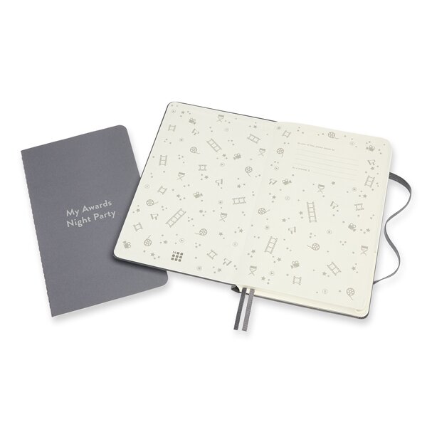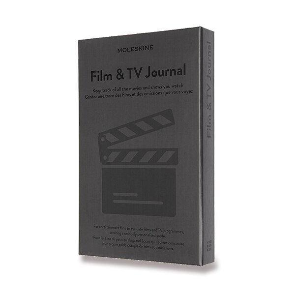 Zápisník s pevnou, v zádech šitou vazbou v kartonových deskách s reliéfním zdobením. Obepíná jej pružná gumička proti samovolnému otevírání. Zápisník je vybaven 2 textilními záložkami, dvojitou vnitřní kapsou, barevnými samolepkami a letákem s historií MOLESKINE. V úvodní části naleznete seznam filmových festivalů, glosář a milníky z historie kinematografie. Zápisník je retolován do 3 tematických sekcí se zvláštním rozvržením stran (seznam sledovaných nebo oblíbených filmů a seriálů, klíčové informace, hodnocení, dojmy a reciénzie) a obsahuje i prázdné strany.