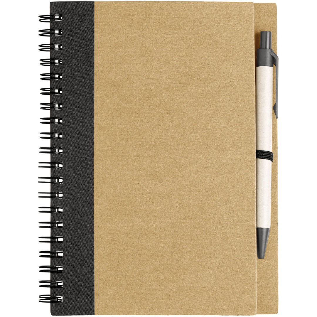 Zápisník s přebalem z recyklovaného papíru s 60 linkovanými listy recyklovaného papíru A6 s perem shodné barvy. Zápisník a pero baleny společně. Recyklovaný papír.