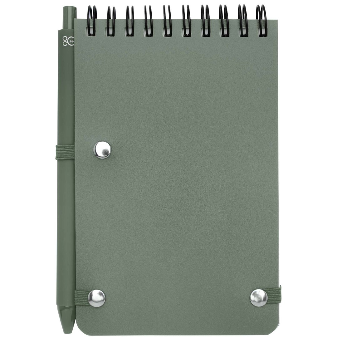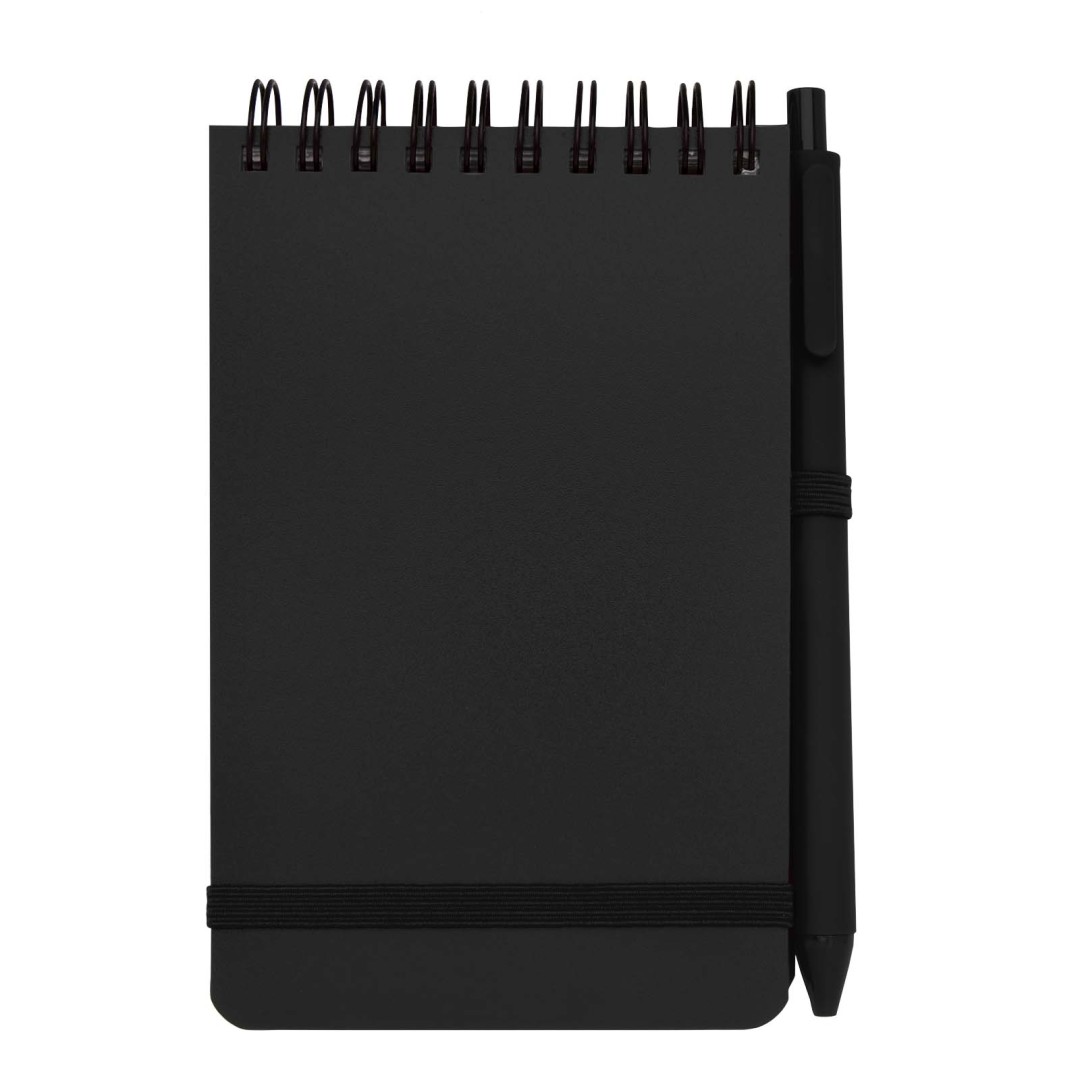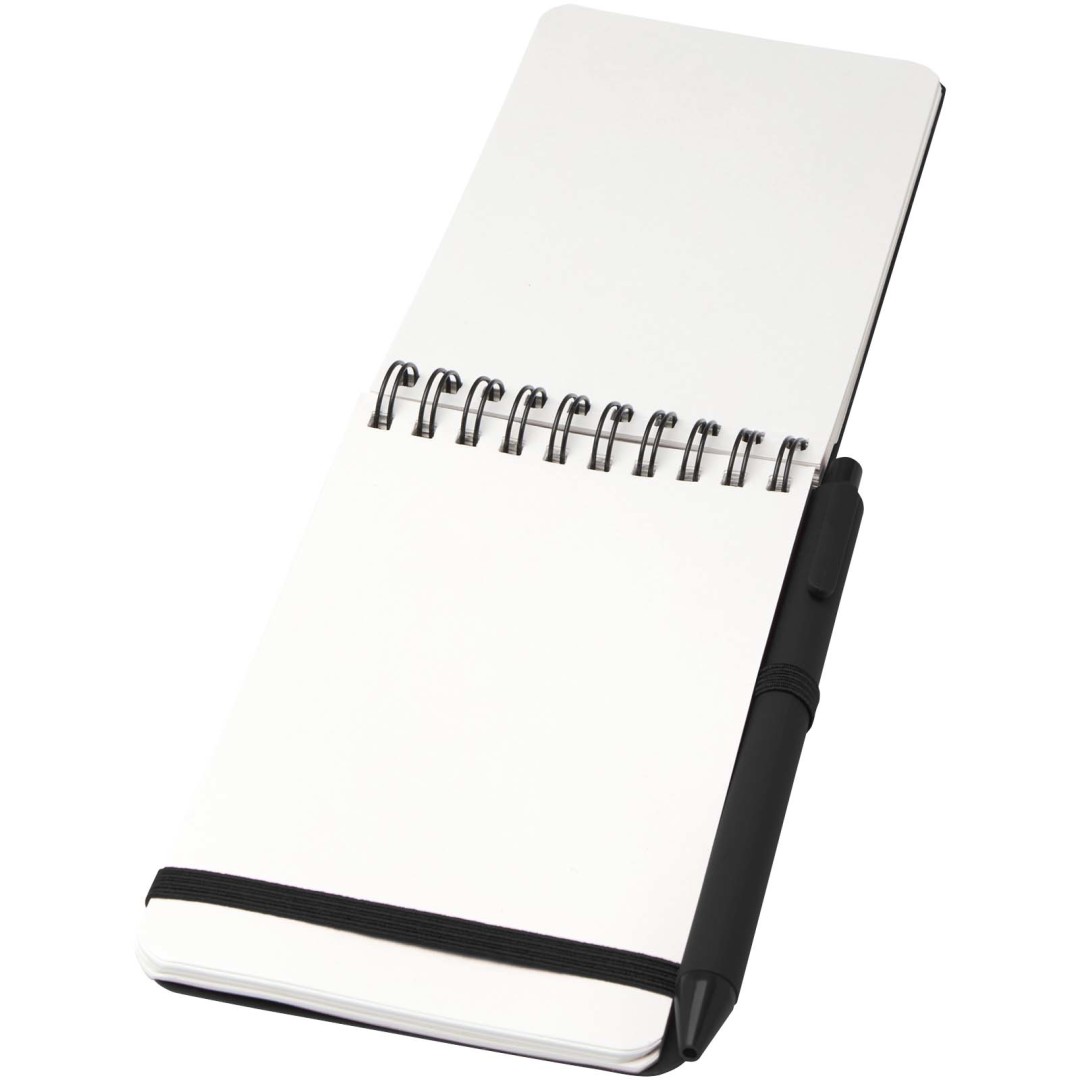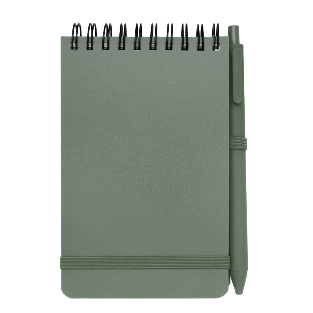 Zápisník Thalaasa formátu A6 s pevnou obálkou je vyroben z recyklovaného plastu, který by jinak skončil v oceánu, s 80 linkovanými listy papíru v krémové barvě o gramáži 70 g/m². Zápisník má zaoblené rohy, elastické zavírání a poutko na pero. Kuličkové pero s černým inkoustem je také vyrobeno z recyklovaného plastu z oceánu. Délka psaní: 1000 metrů. Rozměr hrotu: 1,0 mm.