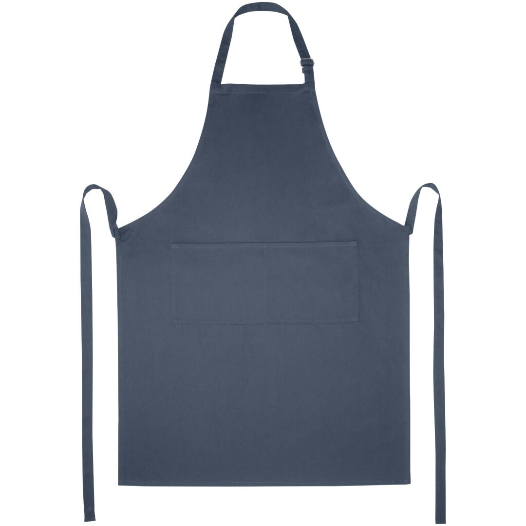 Ochrana krásného oblečení při vaření je se zástěrou Andrea snadná. Zástěra se skládá z kepru o gramáži 240 g/m² (65 % polyester a 35 % bavlna), díky čemuž je silná a pevná a zároveň měkká a pohodlná na nošení. Dvě přední kapsy nabízejí rychlý a snadný způsob uložení kuchyňských potřeb. Zástěra je nastavitelná pomocí spony kolem krku a zadního zapínání, takže je univerzální pro všechny velikosti. Více možností velkého tisku pro maximální zviditelnění loga.